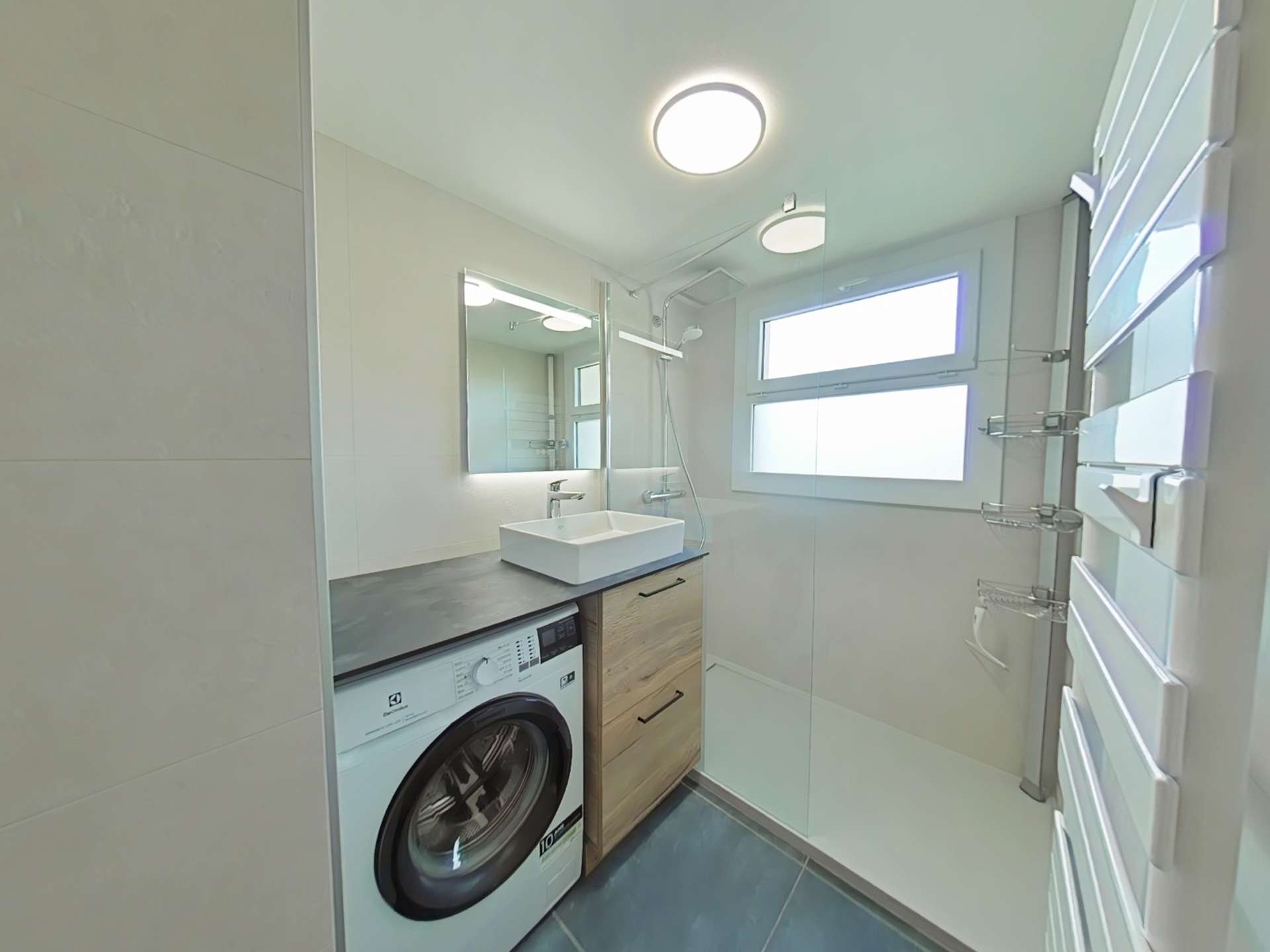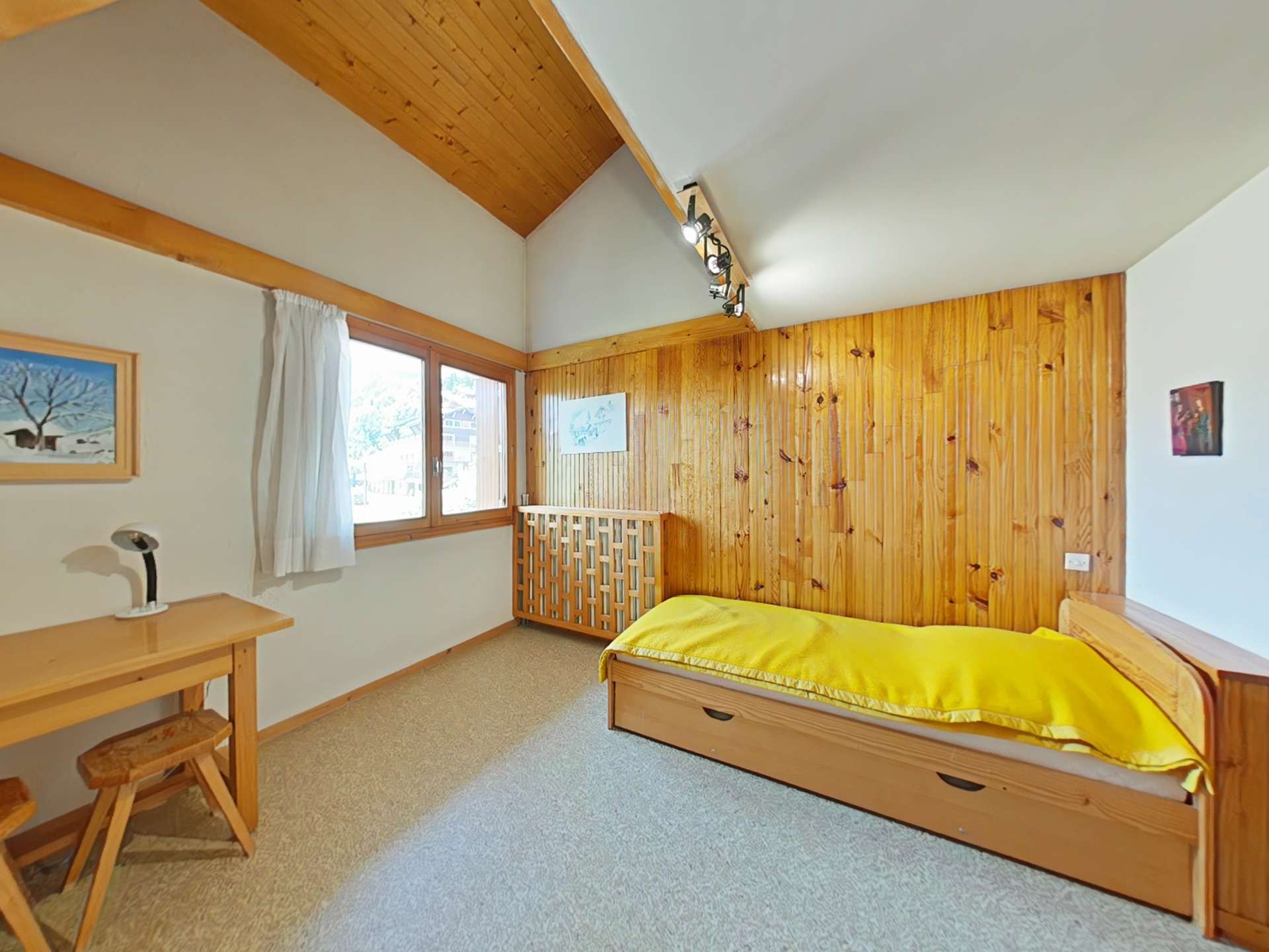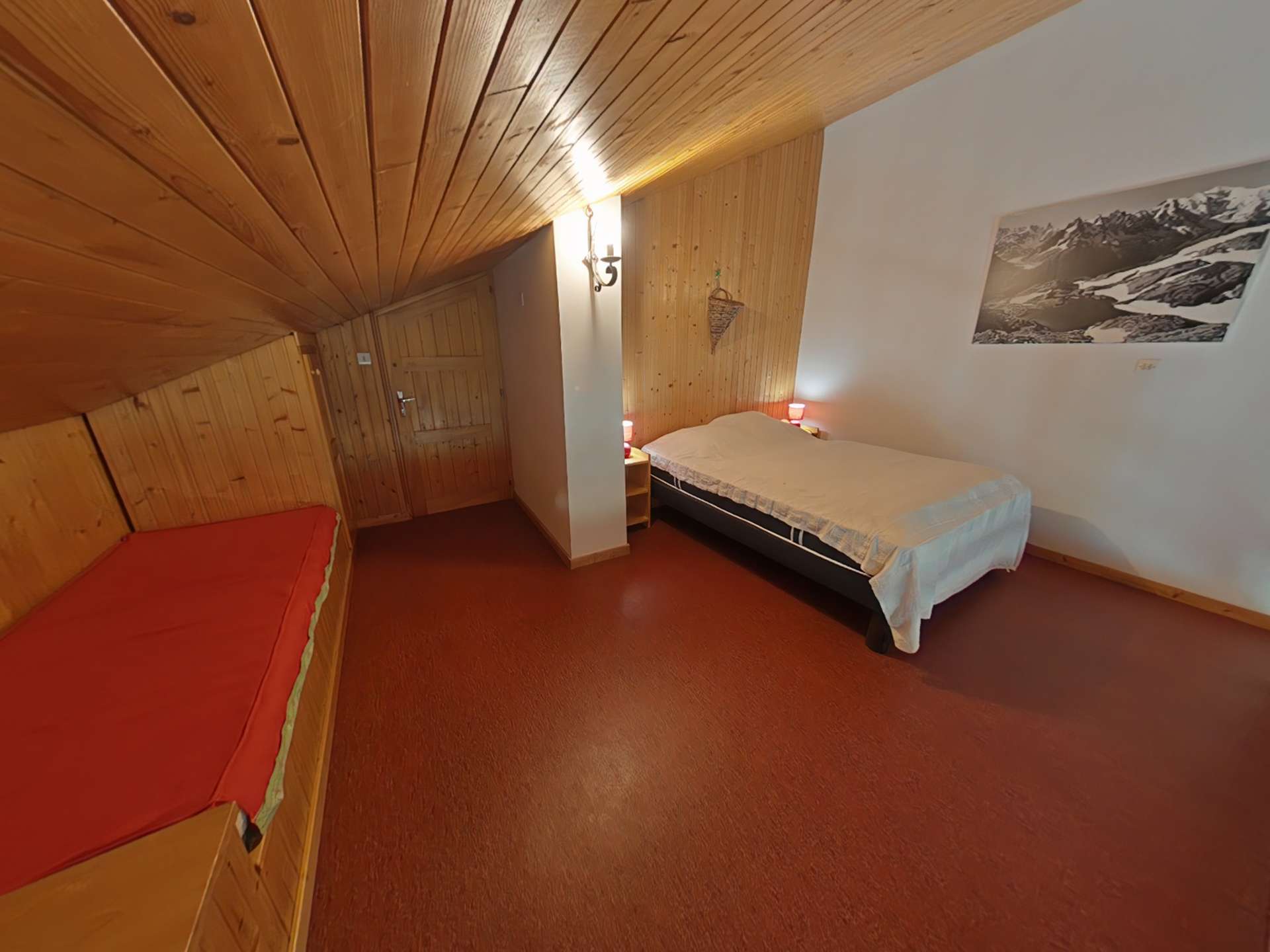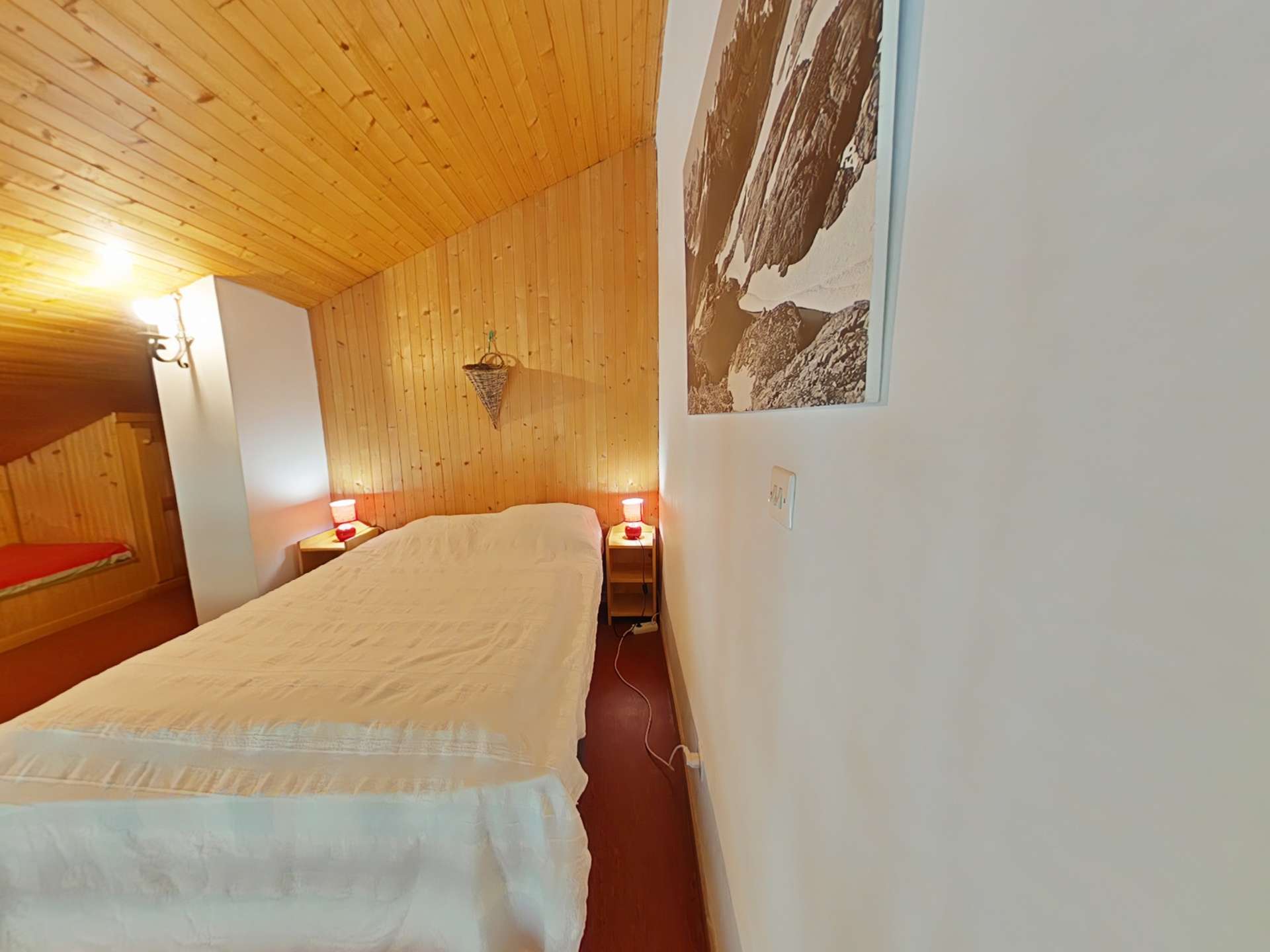 This vacation apartment, located on the 1st floor, includes a living room with a comfortable sofa and television, a fully equipped kitchenette with a dishwasher, one bedroom with a double bed (160 cm), one bedroom with a trundle bed (sleeps 2), a bathroom with a washing machine, and a separate toilet. Upstairs, there is a large mezzanine with a double bed and a south-facing balcony overlooking the ski slopes. The south-facing balcony overlooks the ski area. Ski locker.
