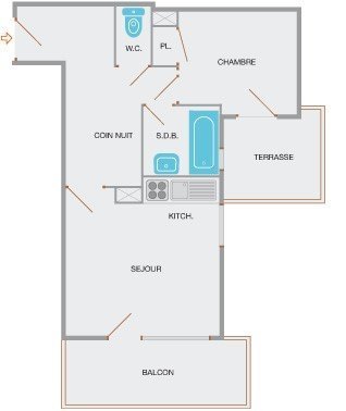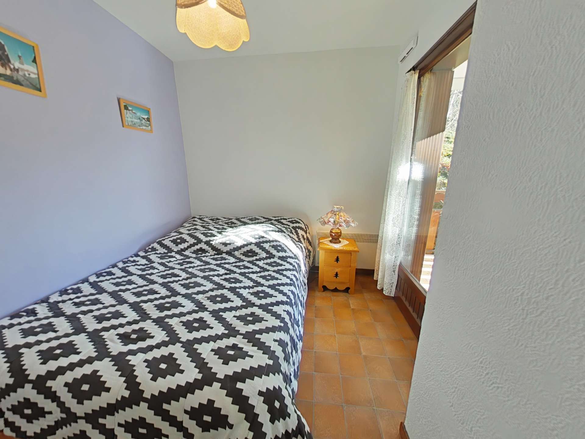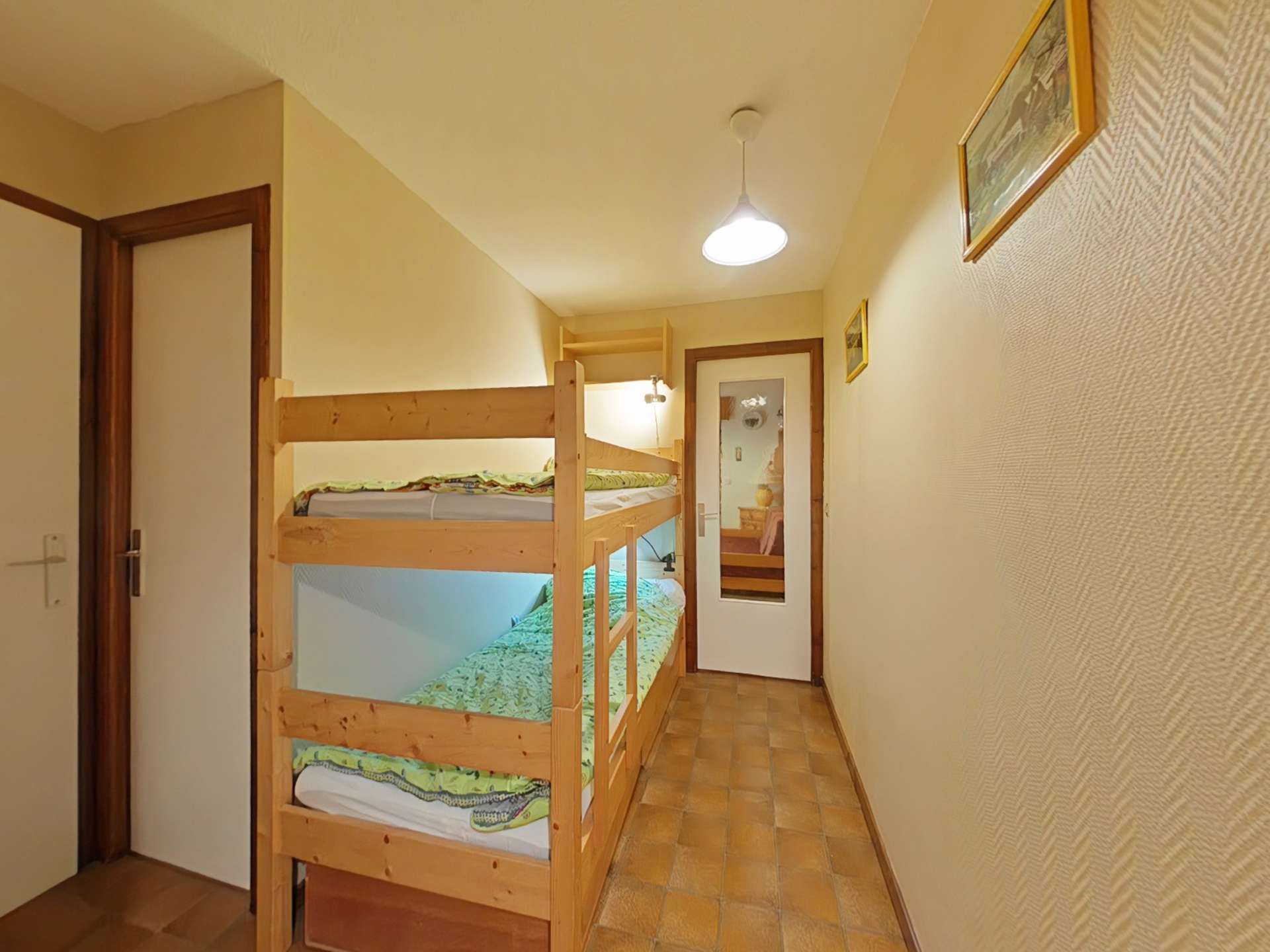 This ground floor holiday apartment (1 floor down) comprises a living room, television, a balcony with views of the ski area and the village, an equipped kitchen area, 1 bedroom with 1 double bed, a sleeping area with 2 bunk beds, a bathroom and a separate toilet. Residence parking space not defined, ski locker. A footbridge connecting directly to the slopes is accessible at the foot of the residence. A little extra not to be missed!