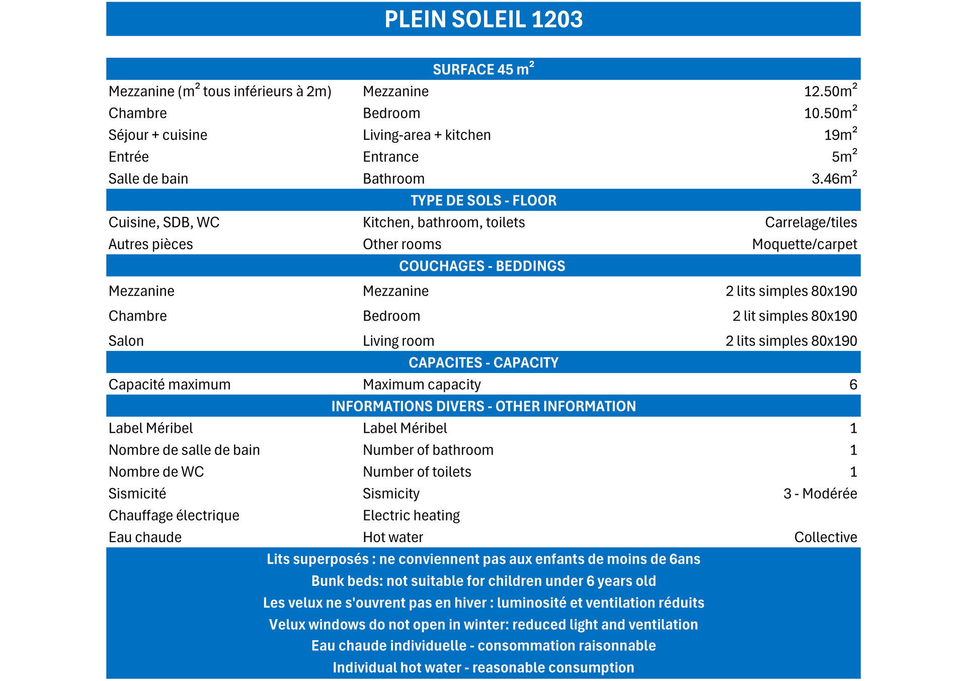 Mezzanine open on the living-room (access from the entrance): 2 single beds (80x190)