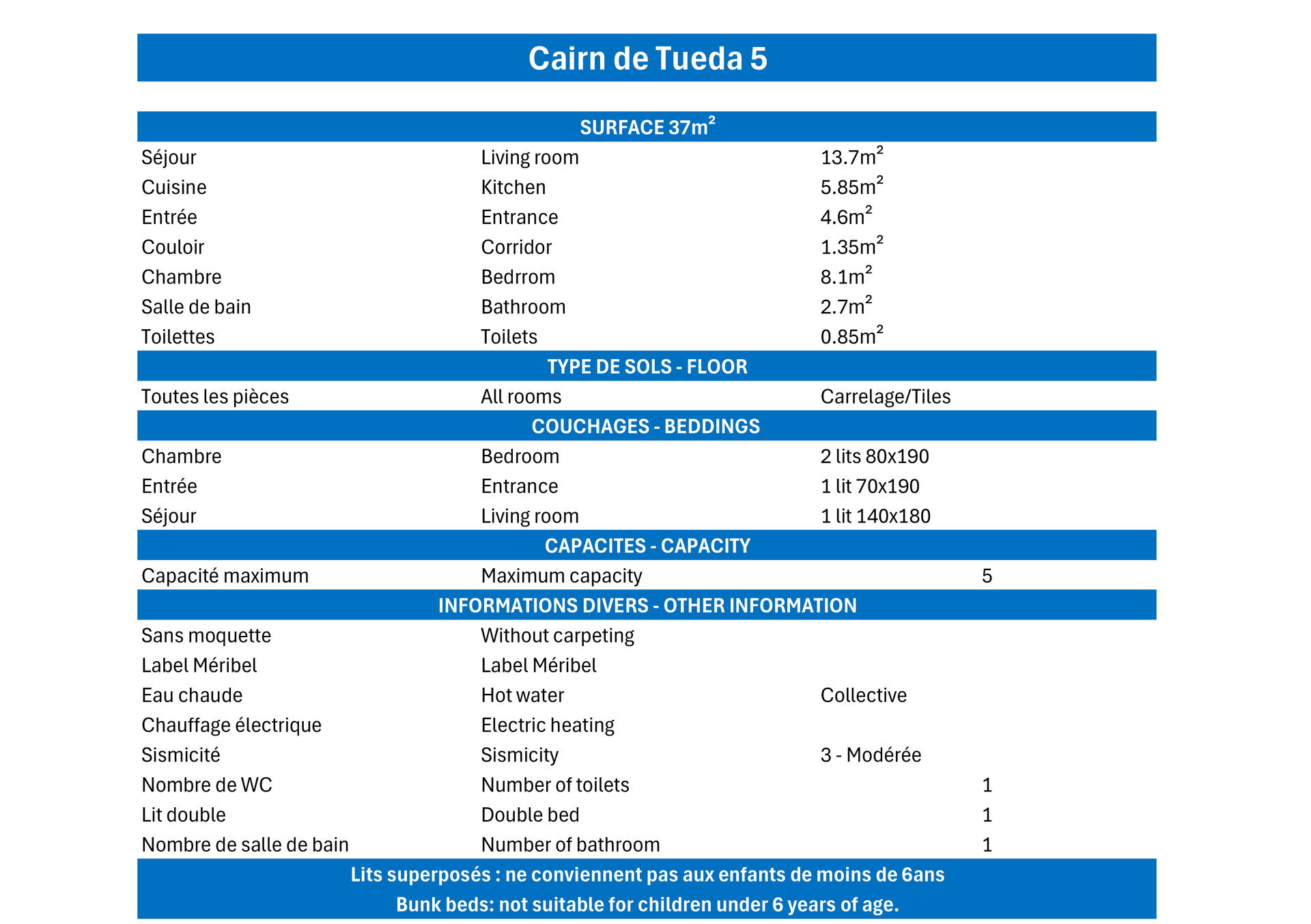 Bedroom: 2 single beds (put as a double bed 80x190)