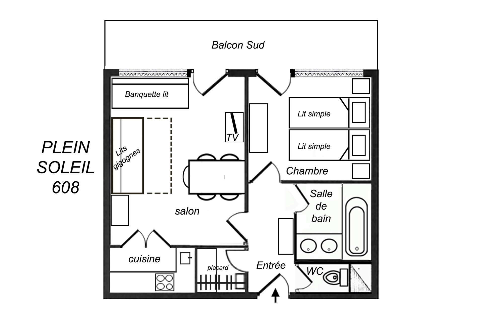 2 Rooms, 5 Persons, 40m², South Balcony