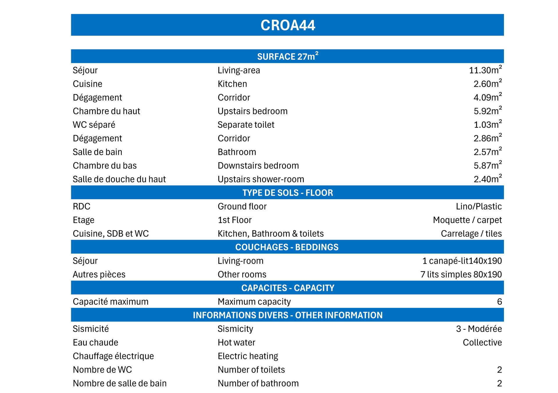 Living-room : 2 single beds (80x190) & 1 pull-out bed (80x190)
