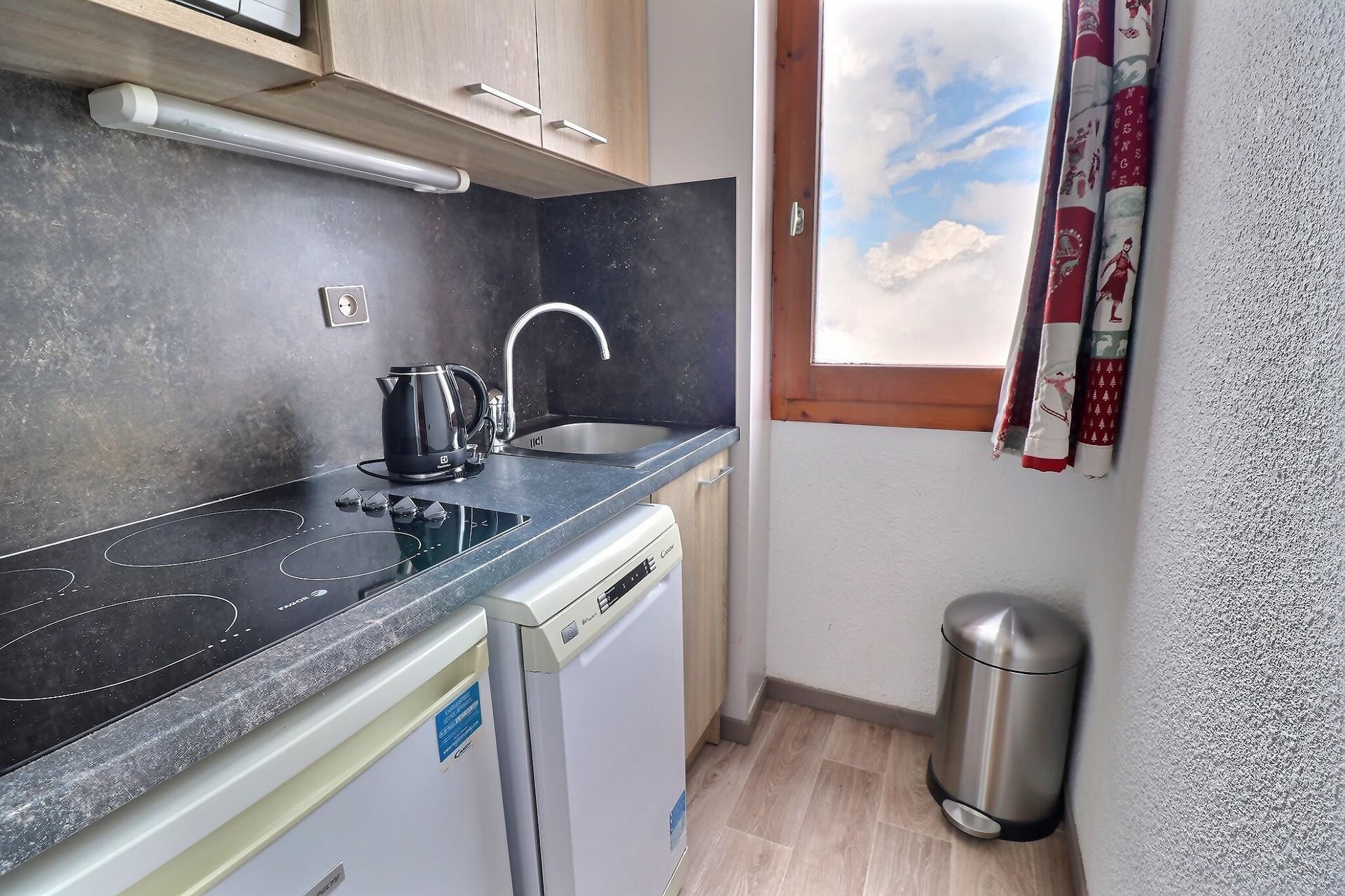 Kitchenette (behind a sliding door) : small micro-wave with grill, fridge, 4 vitro-céramic hobs, dishwasher, filter coffee machine, toaster, electric kettle
