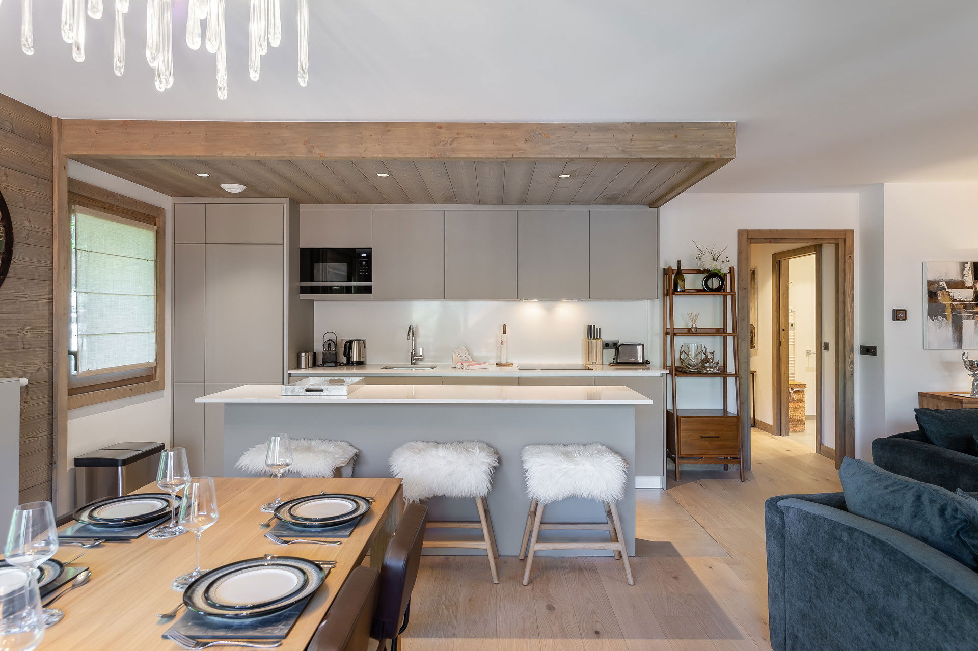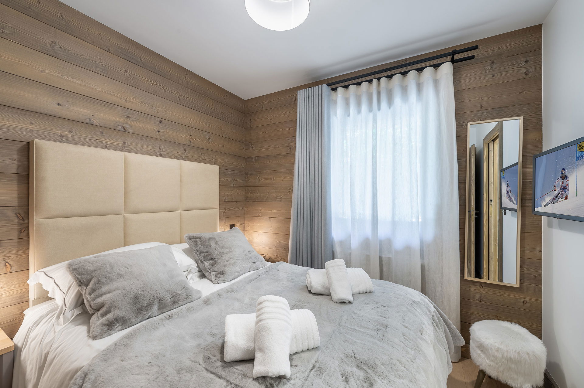 The apartment n°201, on the 2nd floor of the residence "Parc Alpin" offers a surface of about 120m² to welcome 8 people in its 4 bedrooms. West facing, it is located about 230 metres from the Morel chairlift and close to the free shuttle bus stop. The shops are 2 minutes away on foot.
