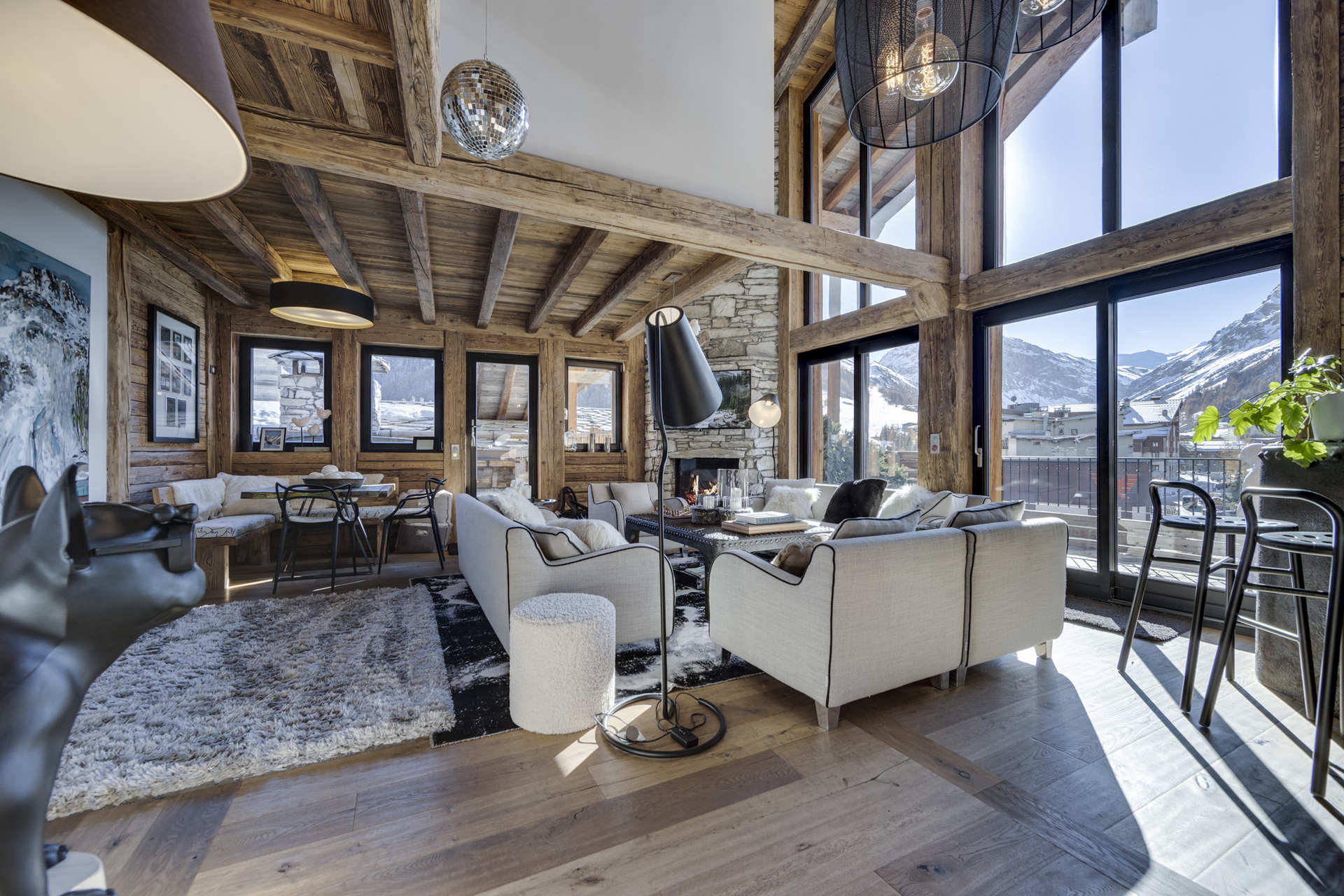 Interior of character combining contemporary decoration and Savoyard architecture.