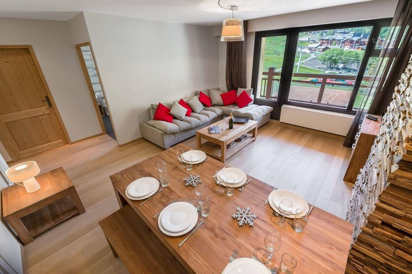 Very nice apartment of 75 m² equipped for 6 people. Located in a very luxurious and completely renovated residence, it has an ideal location on the snow front in the center of Val d'Isère. Its large balcony offers a breathtaking view of the mythical face of Bellevarde.