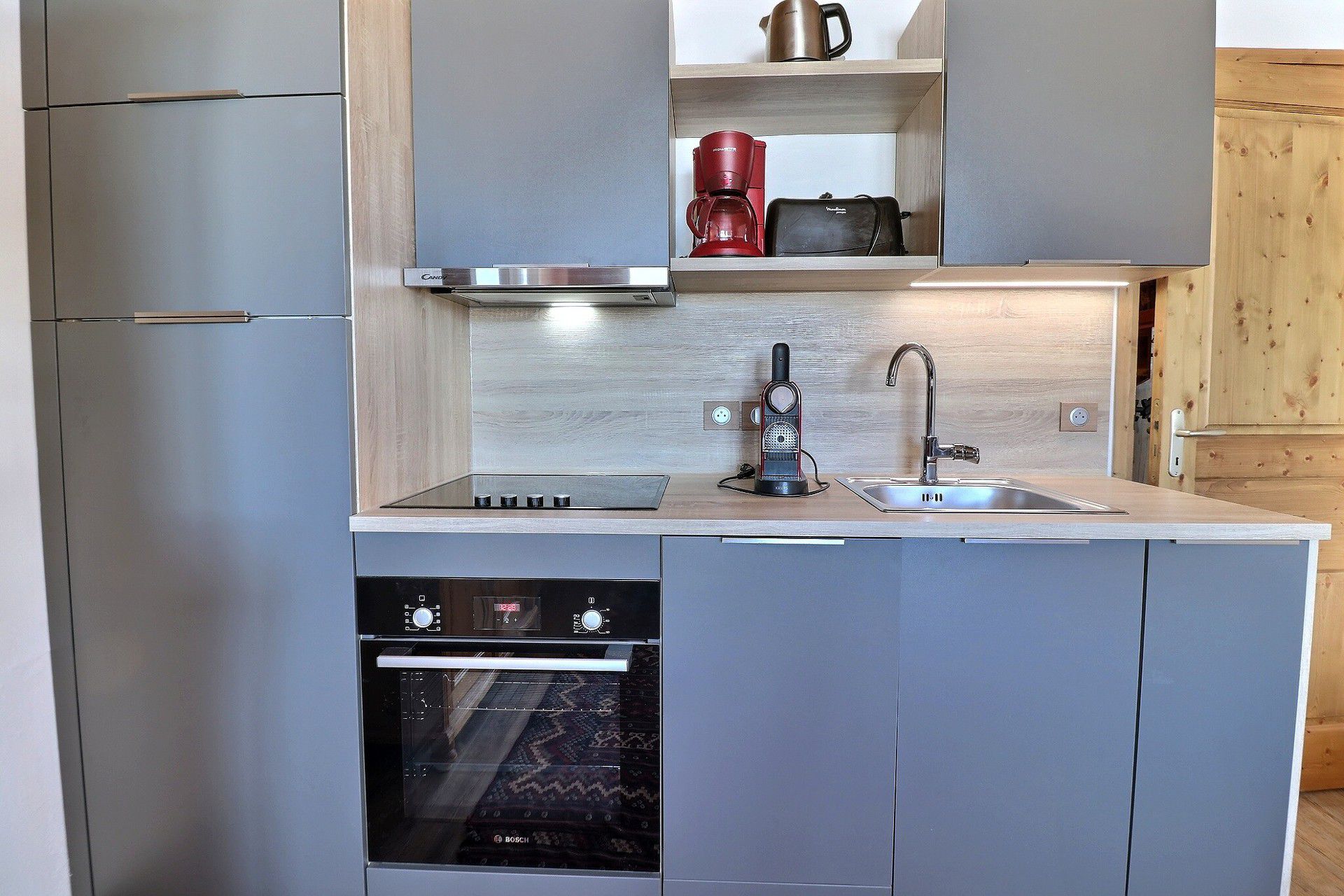 Kitchen corner: oven with micro-waves, fridge, dishwasher, 4 vitro ceramic hobs, Nespresso coffe machine, hood, filter coffee machine, toaster, electric kettle