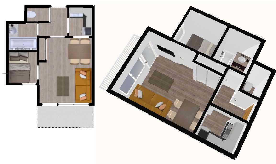 2 room apartment of 20 m2 for 4 people