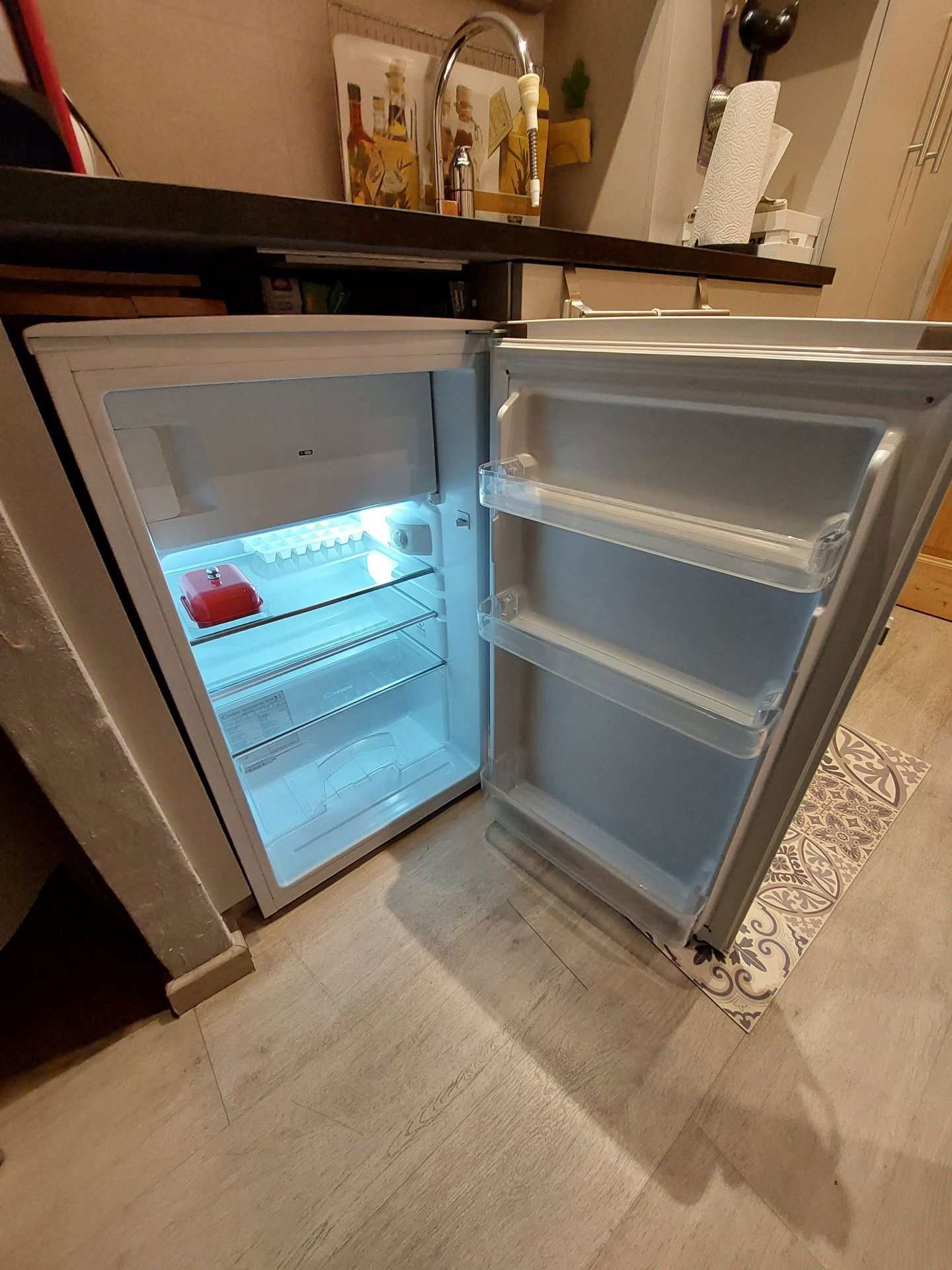 Equipped with microwave oven, ceramic hob, fridge with freezer