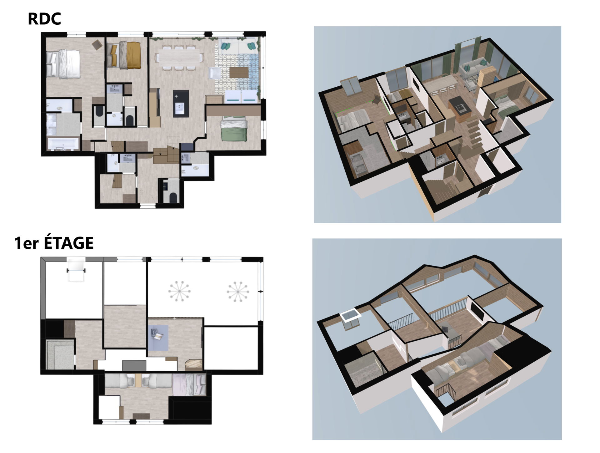 - 4 double beds