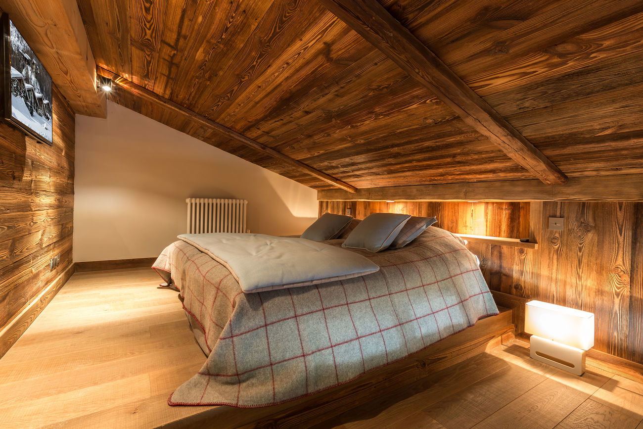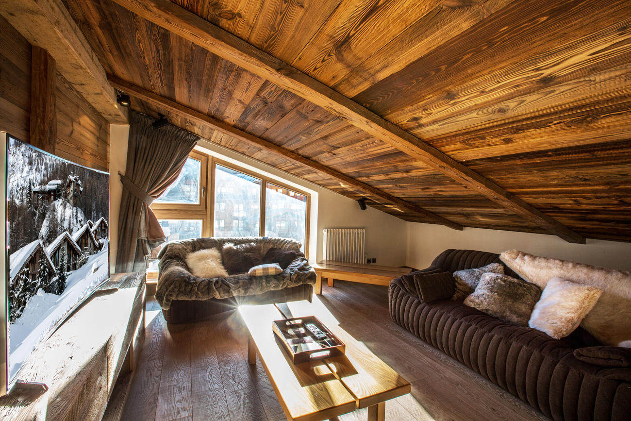 Luxurious 5 room apartment on the top floor of the residence with large volume under roof, for 8 people. 240 m2 (including 50m2 <1.80m) on 2 levels with a balcony of 13 m². South facing overlooking the mountains of Solaise and Bellevarde. Refined and exclusive decoration, ideal central location.