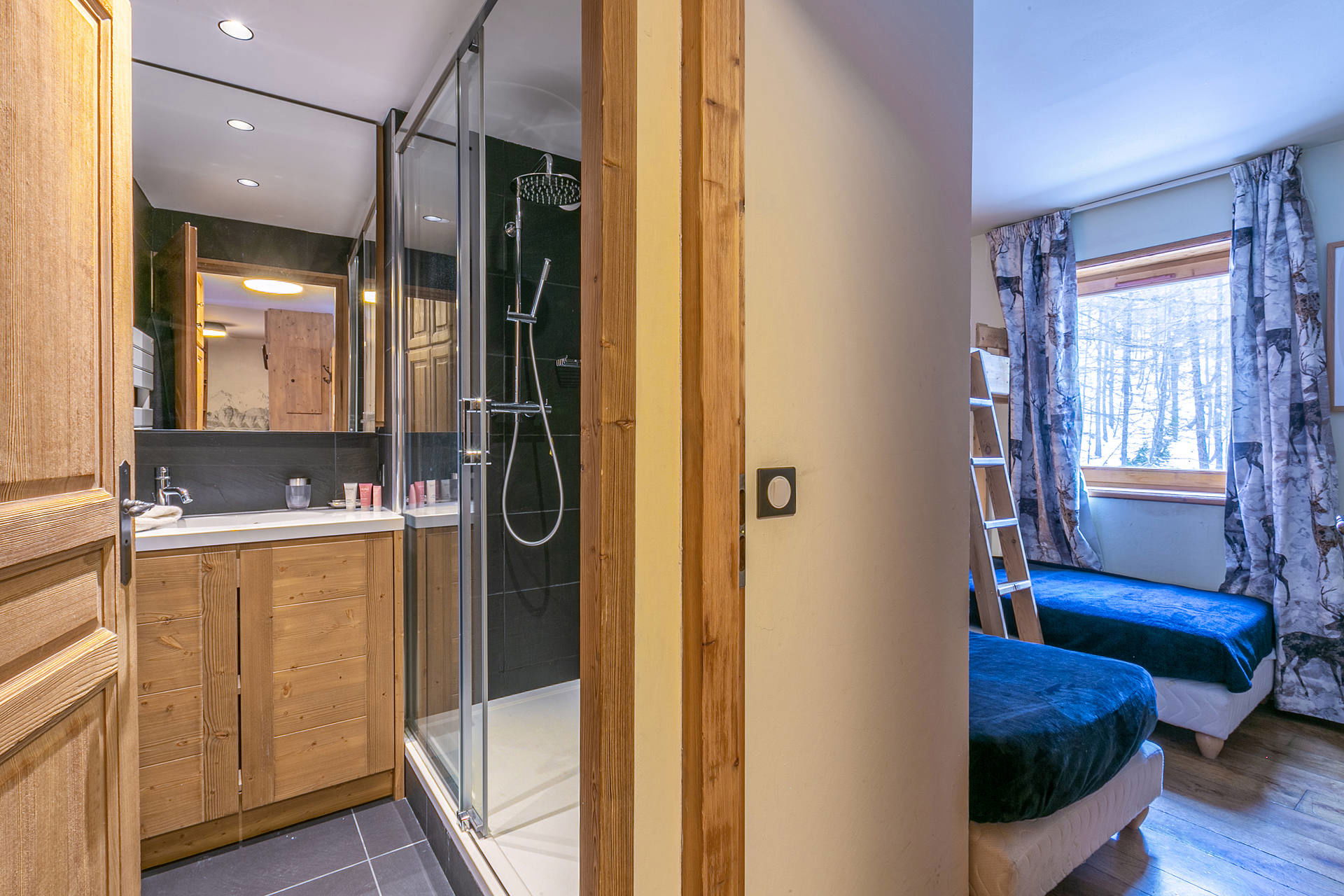 Located on the 1rst floor of the chalet with a large and sunny South/East facing terrace