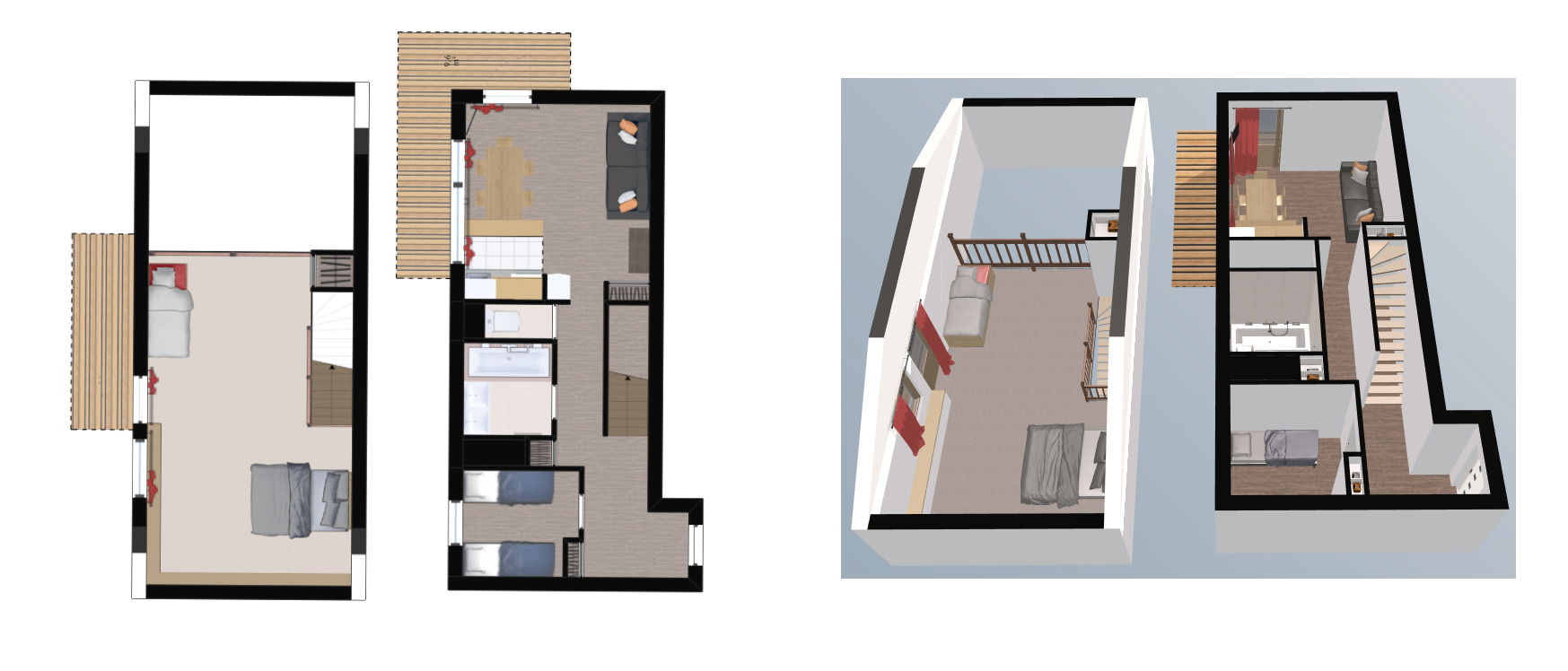 2 Room apartment with mezzanine of 53m2 for 5 people