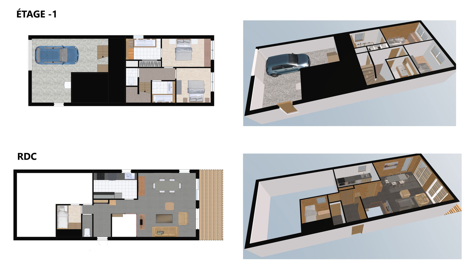 Semi-detached chalet comprising of 3 rooms and a cabin totaling 77 m2 for 5 people.