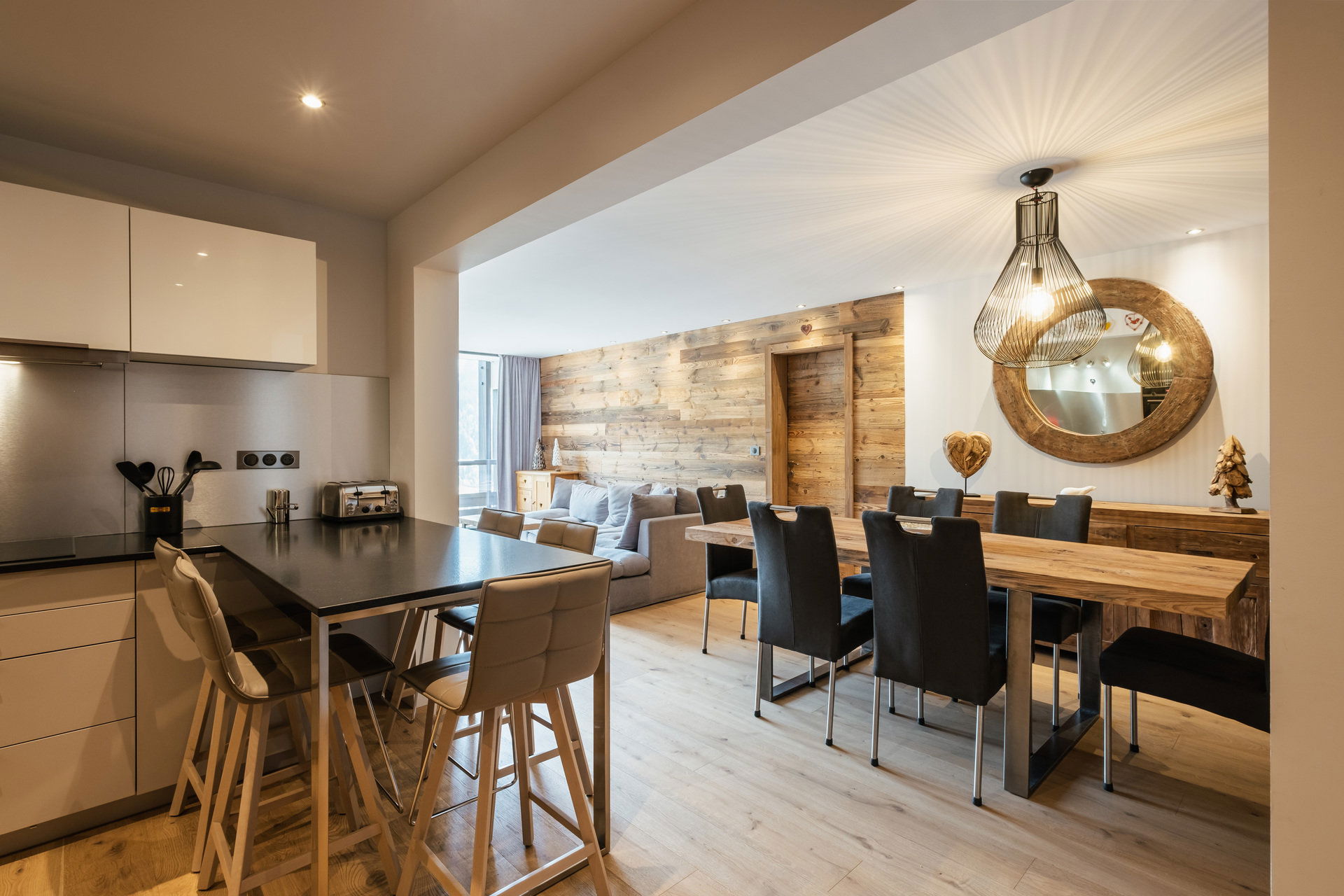 - Open KITCHEN (12.86 m²), fridge + freezer (277L), INDUCTION STOVE, OVEN, MICROWAVE, DISHWASHER, NESPRESSO coffee machine