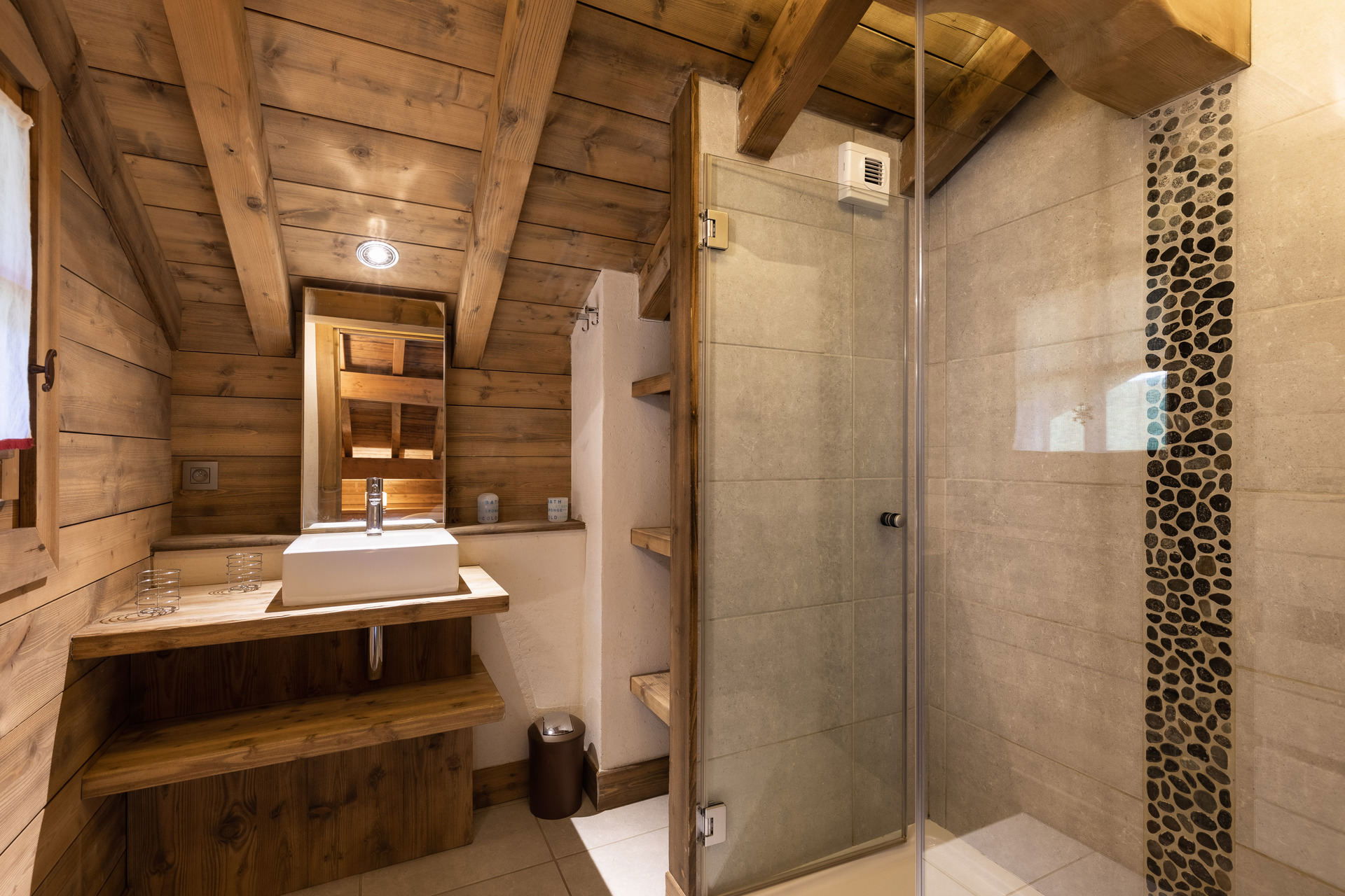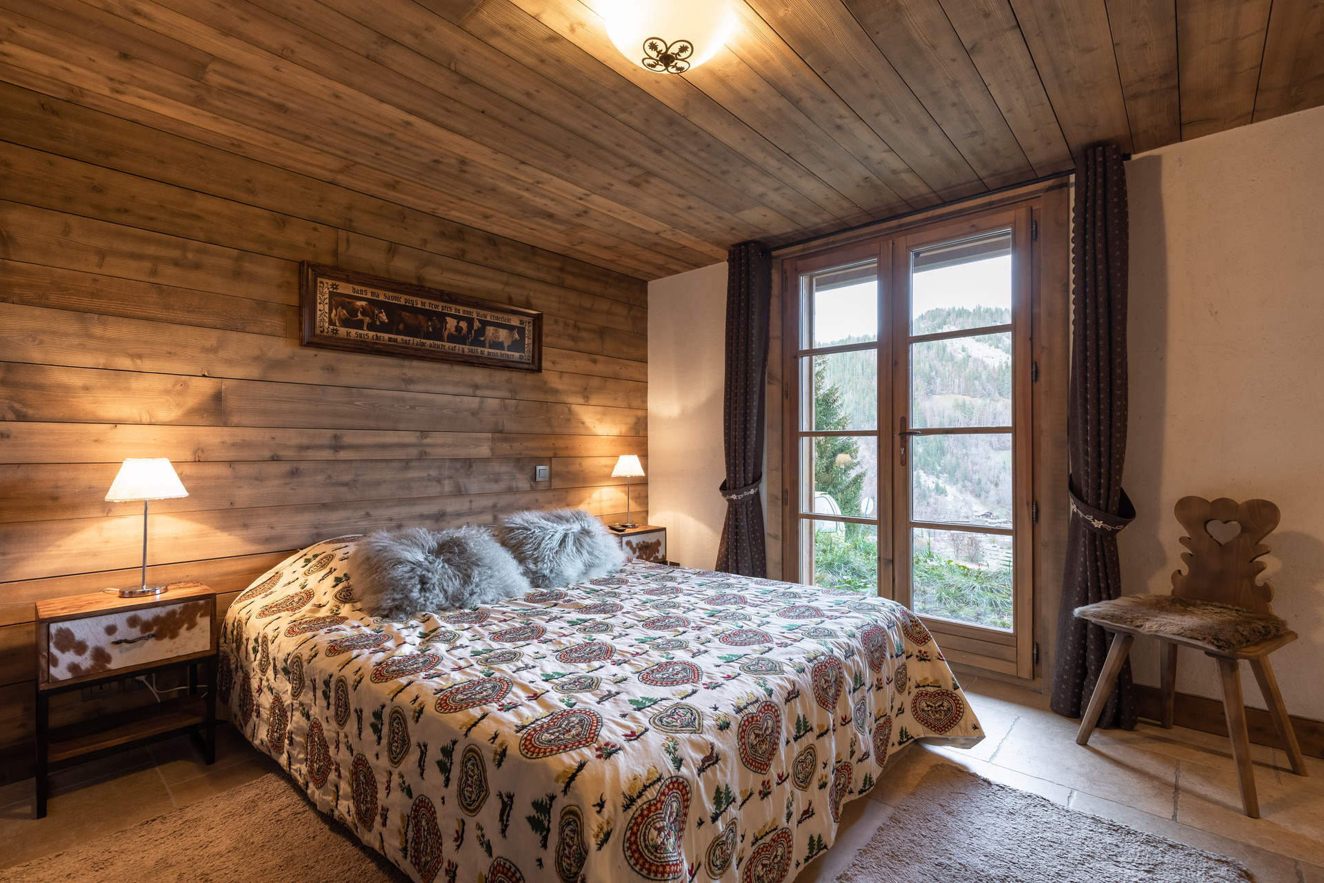 - BEDROOM (16.08 m² including 3.87m² mansard roofed) : 1 DOUBLE BED (160), west facing French window + balcony, fields / next door chalets view. Adjoining shower room: shower, TOWELDRYER radiator (4 m²)