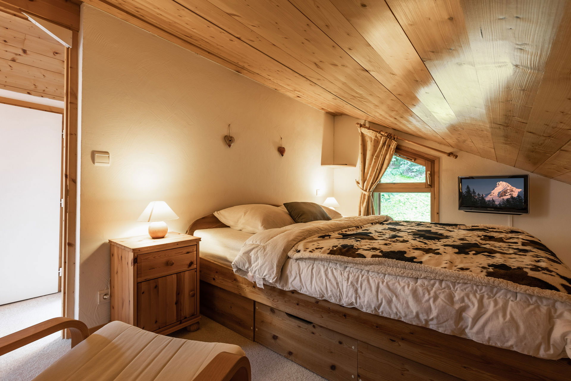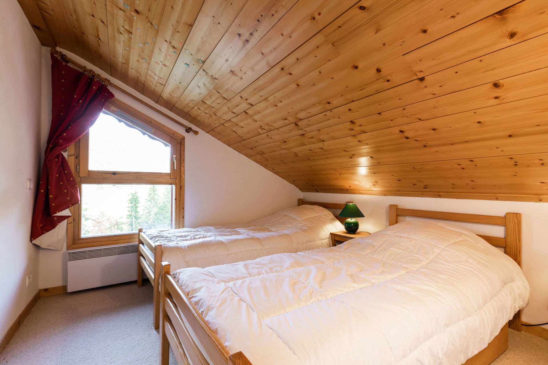 - SLEEPING NOOK (7.48 m² including 5.74m² mansard roofed) : 2 SINGLE BEDS (90), west facing window, slopes/ village / mountain view