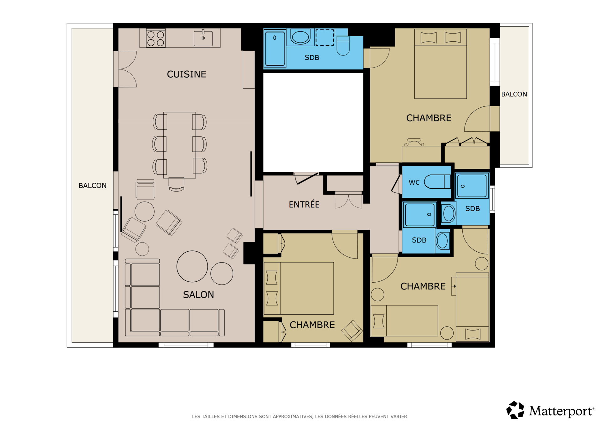 - 2 double beds