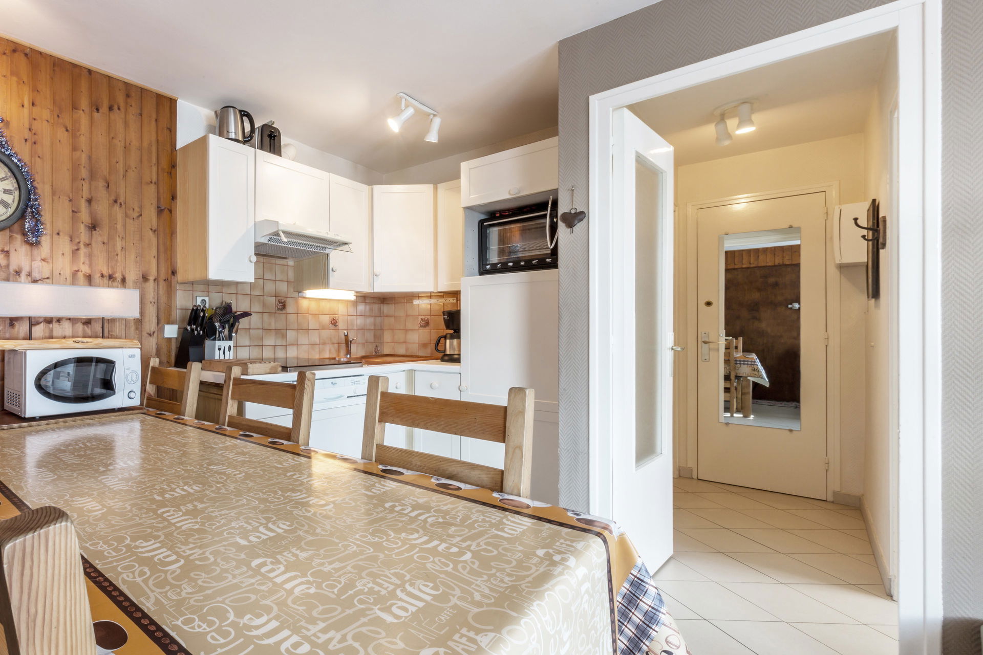 - KITCHENETTE: fridge (183 L), GLASS-CERAMIC STOVE, oven, MICROWAVE, DISHWASHER