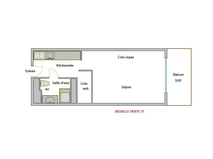 STUDIO + SLEEPING CORNER / 3 guests / 27 m² / 2nd floor / South facing