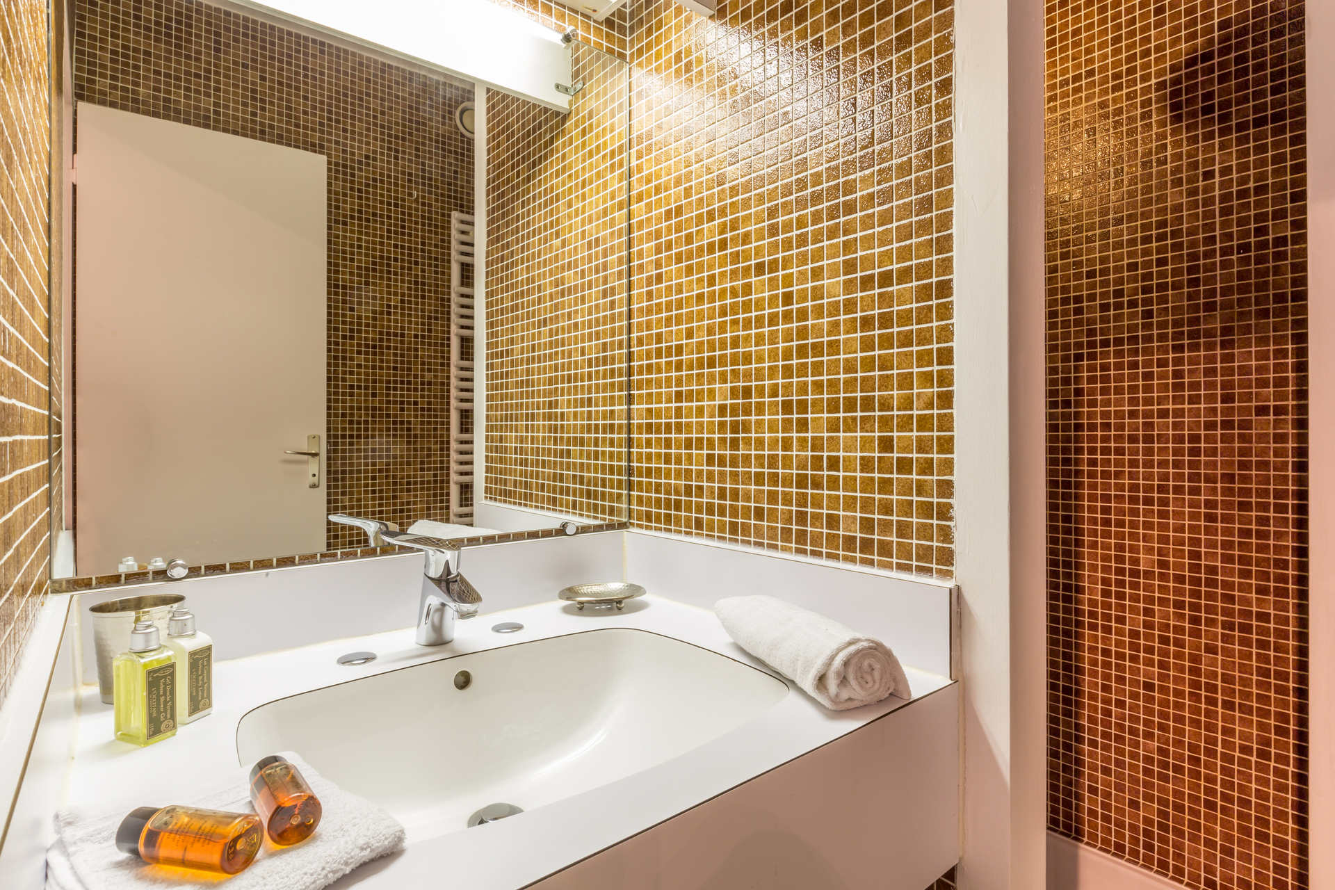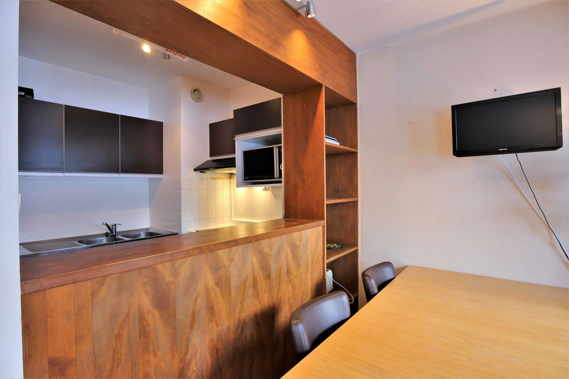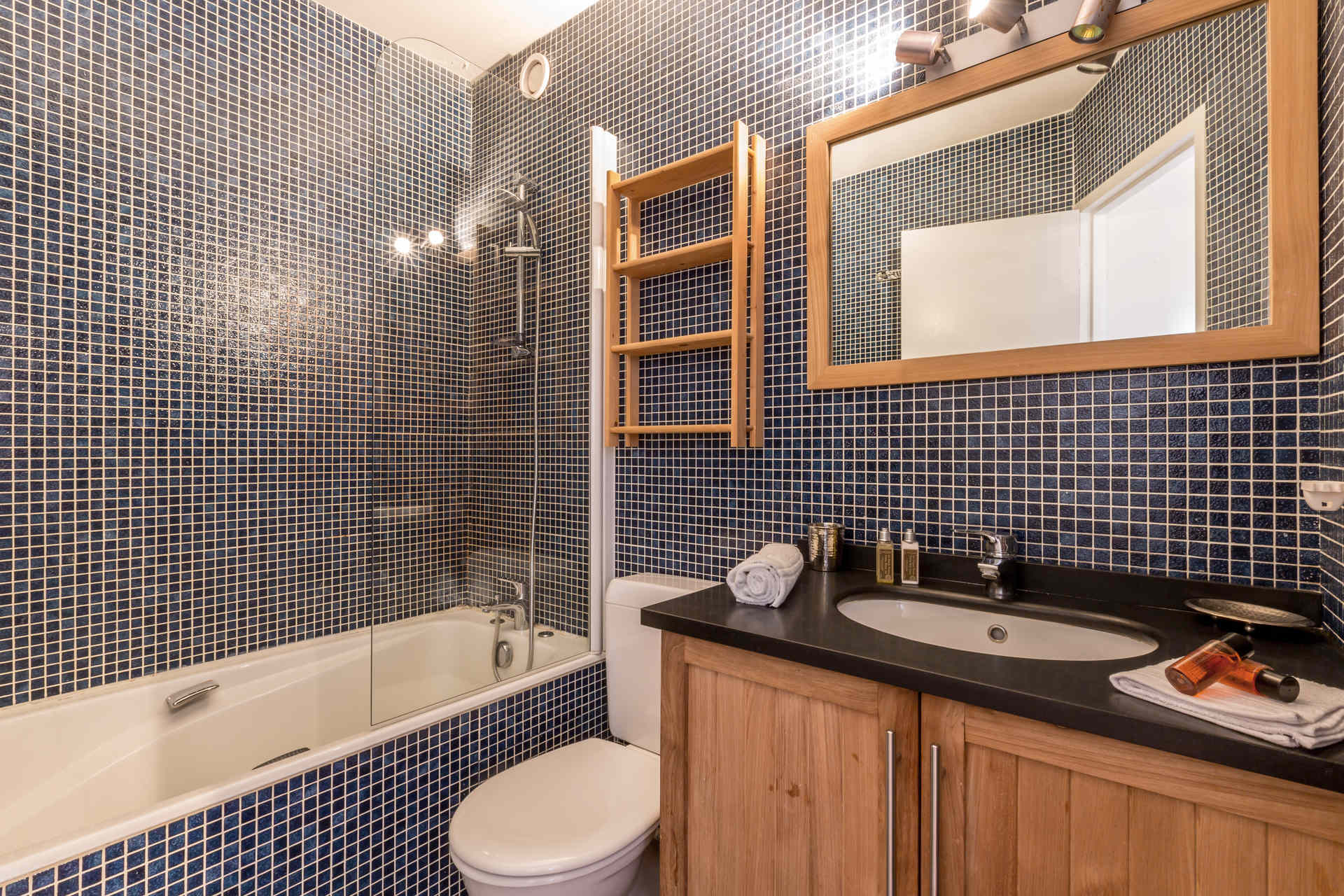 Equipped with microwave oven with grill, ceramic hob, electric hood, fridge with freezer and dishwasher.