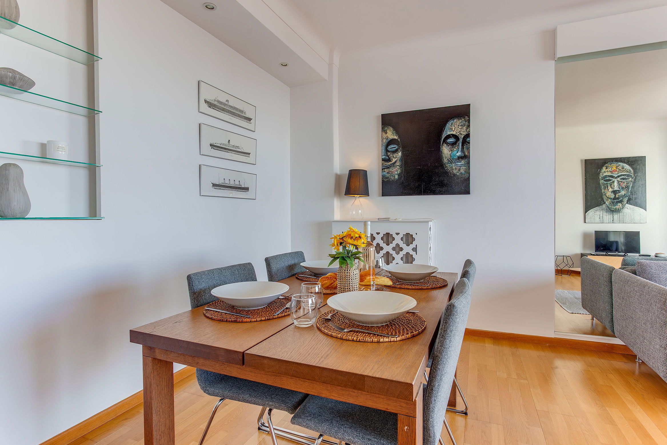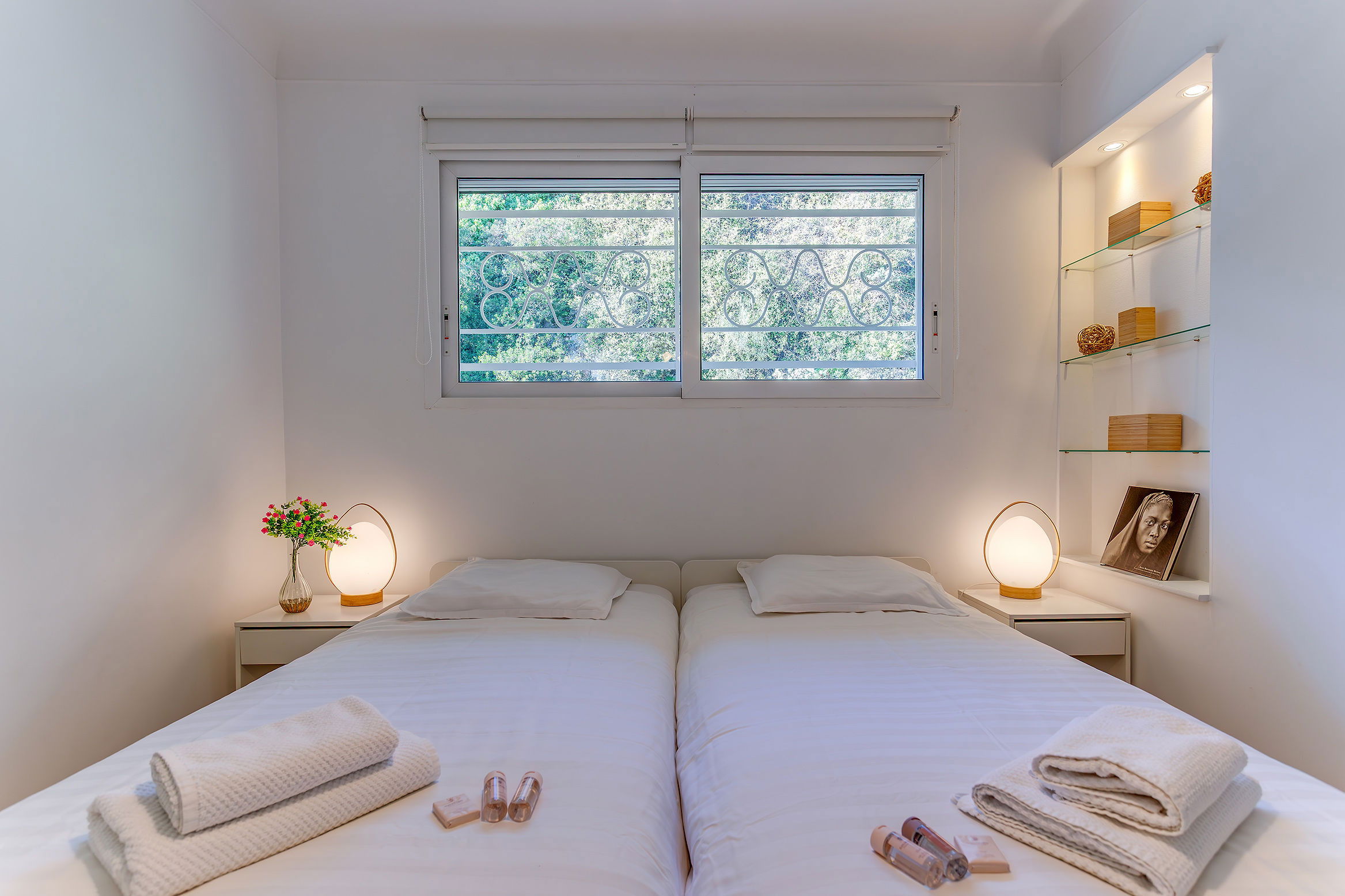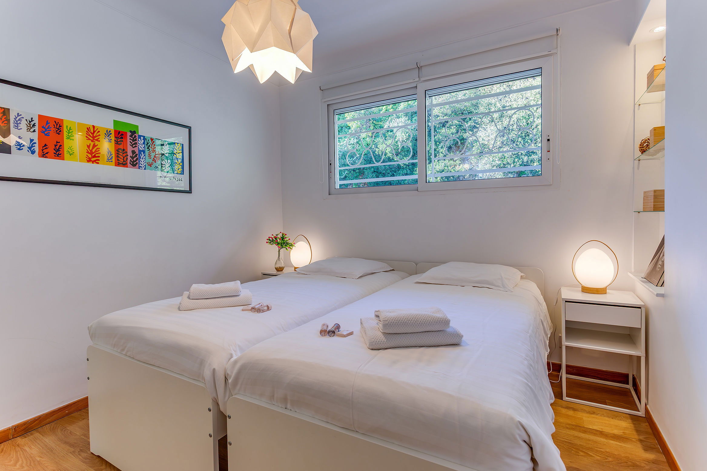 The apartment has an American kitchen equipped with oven, ceramic hob, microwave, washing machine, etc., a living-dining room, a bedroom with a queen size bed (160 cm) and a large wardrobe, another bedroom with 2 single beds of 90cm which can be joined together if necessary to make a large king size bed, a bathroom equipped with a sink, a shower and a separate toilet.