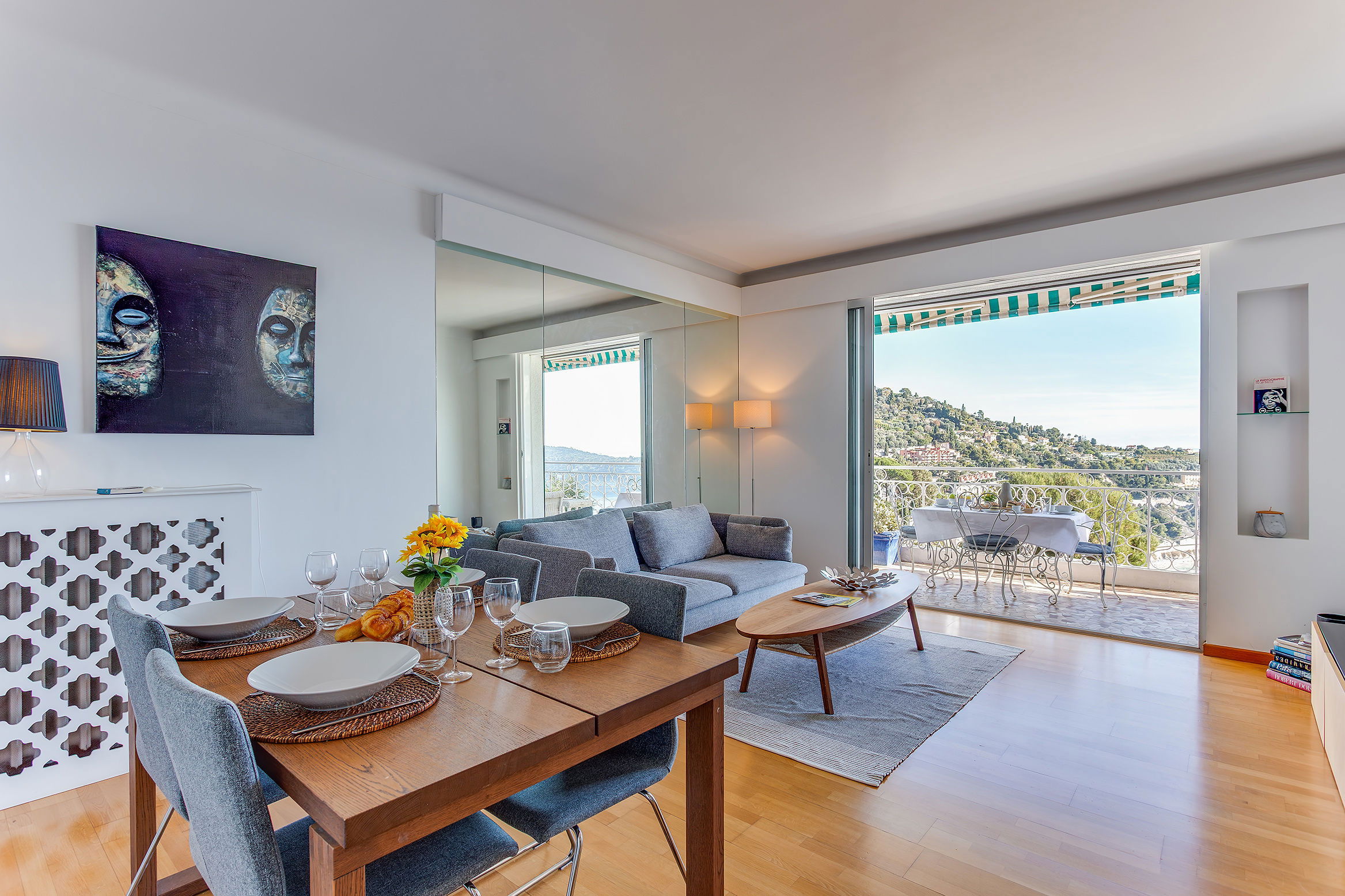 TERRACE ON THE BAY 2 is located in the magnificent city of Villefranche sur Mer, discover a breathtaking view from this beautiful apartment of 65 square meters with elevator located on the heights of Villefranche sur Mer , you are 10 minutes by car from the port district of Nice and 15 minutes from the famous Promenade des Anglais. You are also 10/15 minutes walk from the pretty beach of Villefranche as well as the shops.