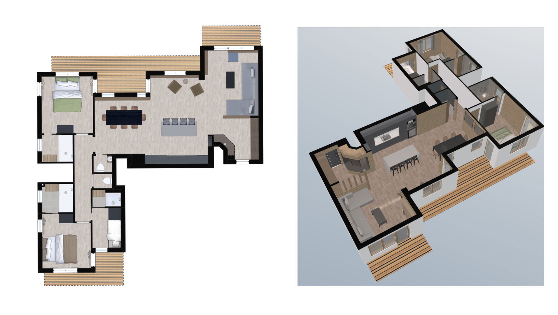 - 2 double beds