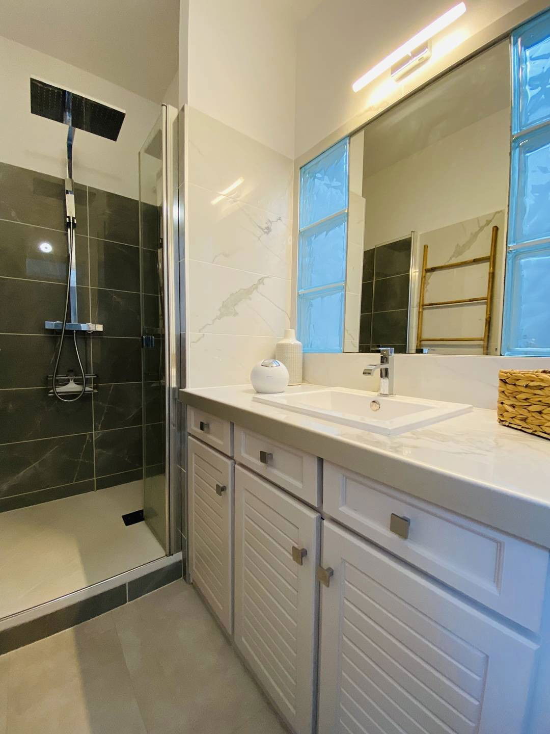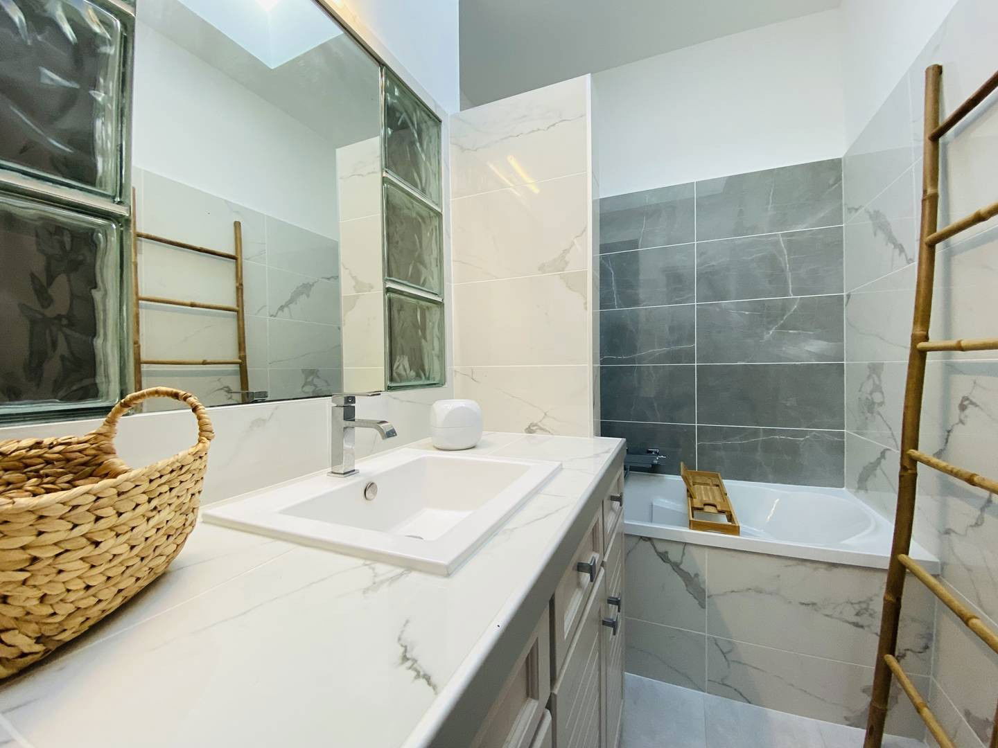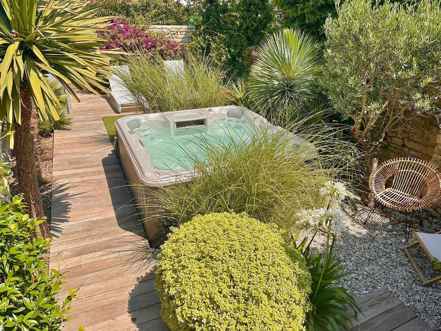 The decoration is refined, the quality equipment and the bright and warm living spaces invite you to relax. The large living room opens onto a beautiful landscaped garden with terrace. You will particularly appreciate the relaxation area with jacuzzi out of sight. The house has three bedrooms in the main house and two bedrooms in the annex. It is perfect for families or a stay with friends. The location in the heart of the ramparts of Saint-Martin is indeed an ideal starting point for strolling and discovering Saint-Martin and its surroundings.