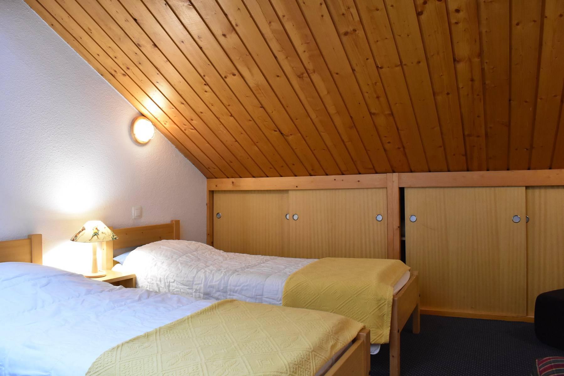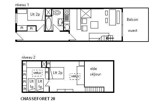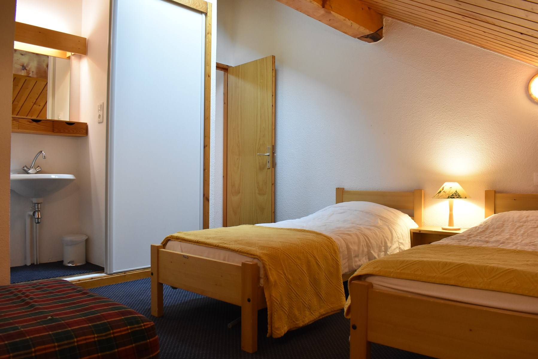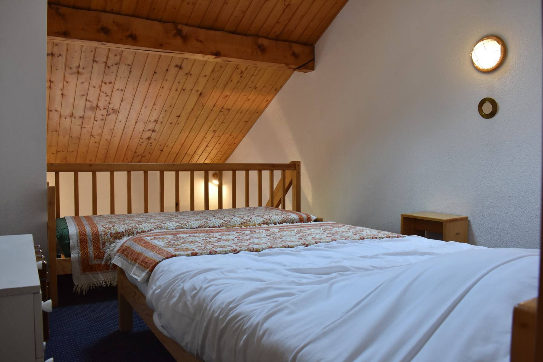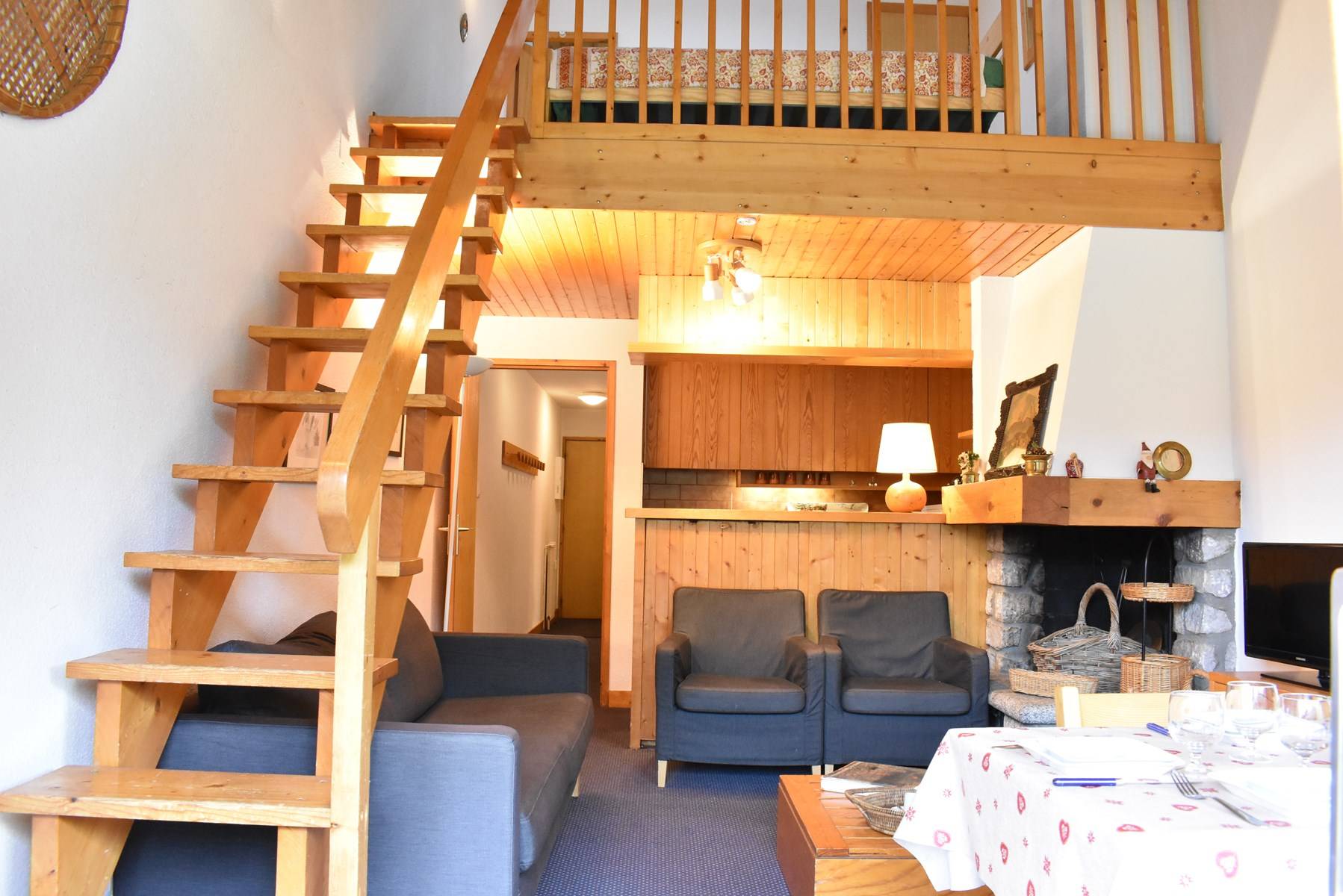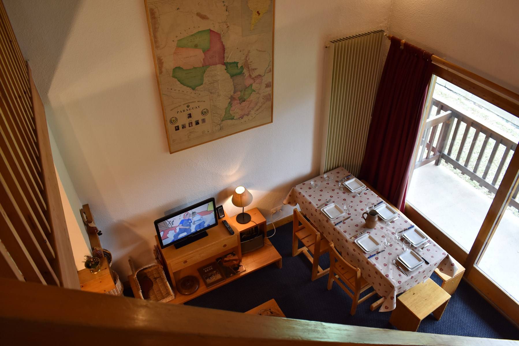 This apartment in the mountains located on the 1st floor with lift, comprises on the ground floor, a living room with television opening onto a West balcony, an equipped kitchen open to the living room, 1 bedroom with 1 double bed 140, 1 bathroom with WC. On the 1st floor, you will find 1 west-facing mezzanine with 1 double bed 140 and 1 bedroom with 3 single beds with washbasin and skylight.