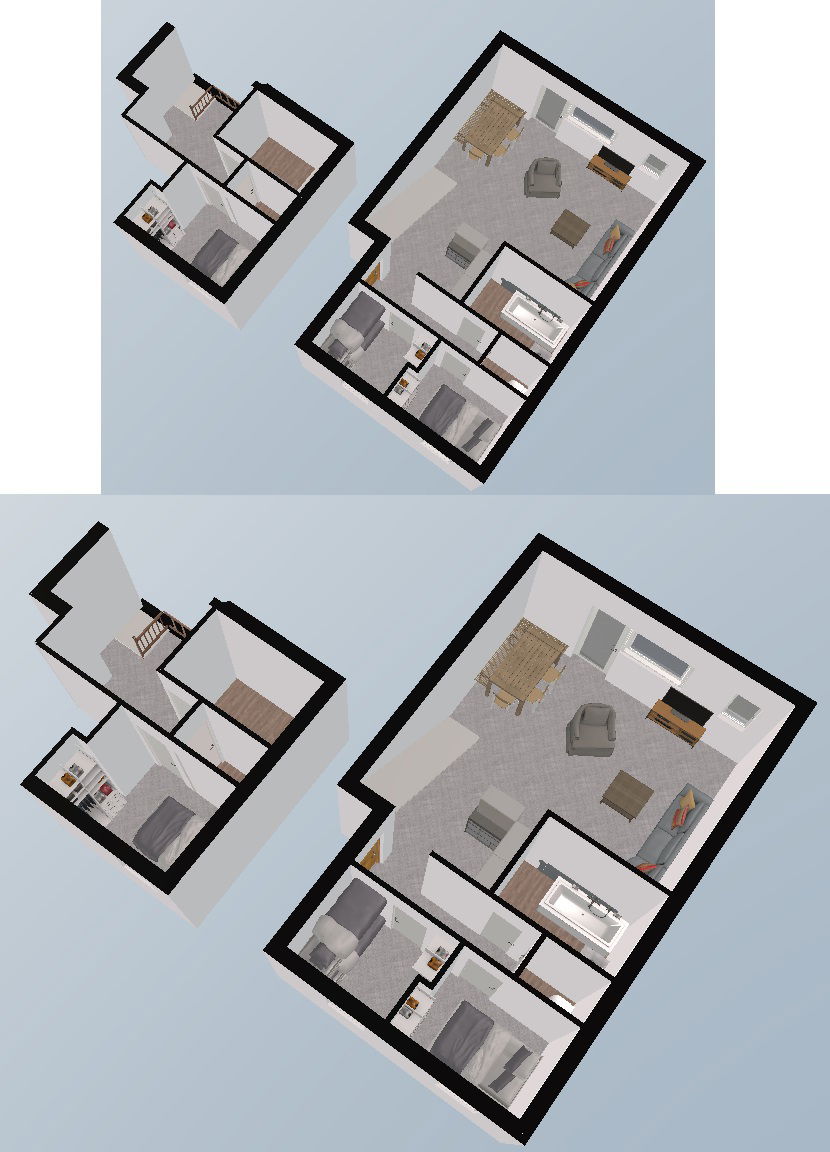 - 2 double beds