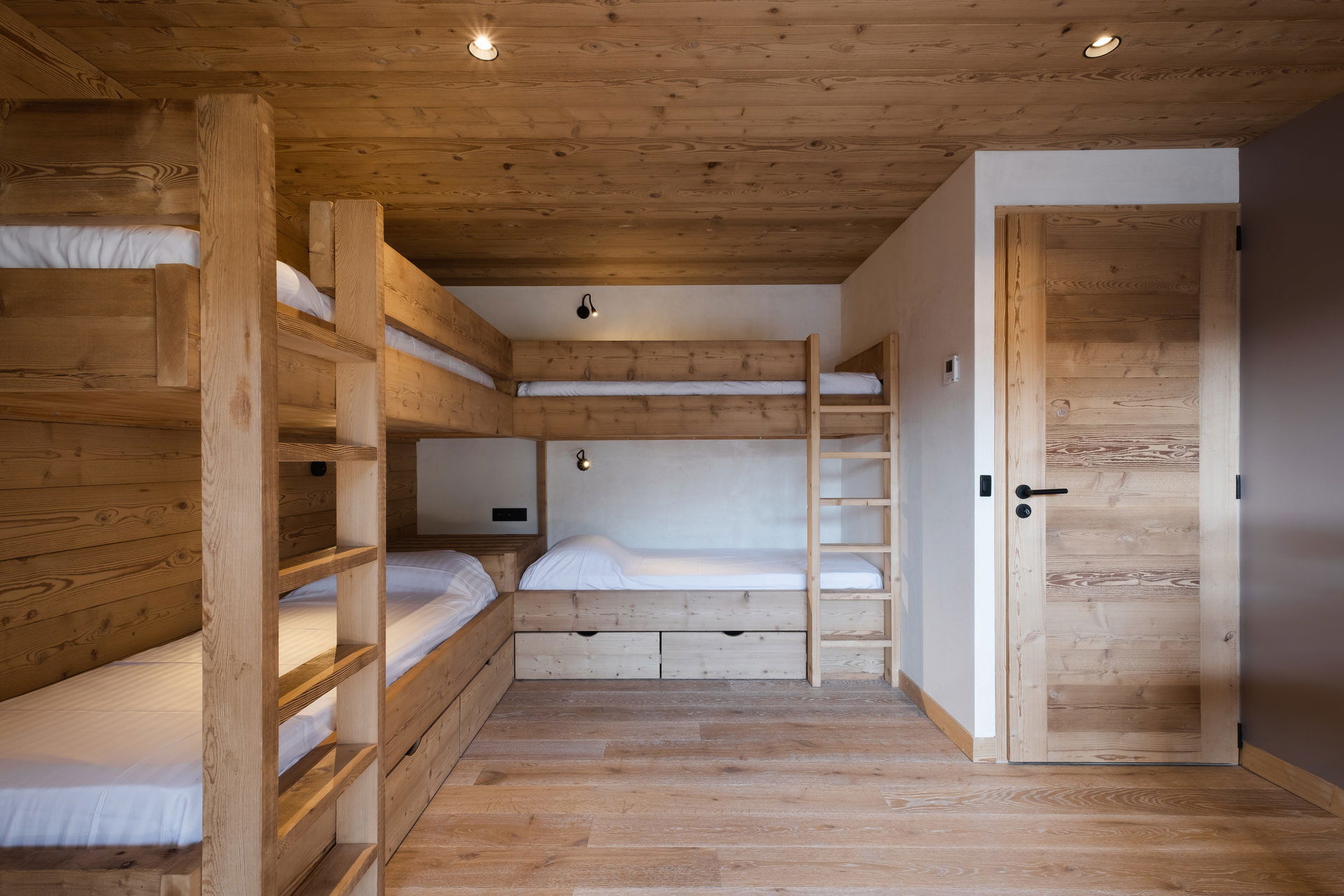 - BEDROOM (14.70 m²) : 2X2 BUNK BEDS (80), flat screen TV, south facing sliding bay window, south terace access, panoramic mountain view.