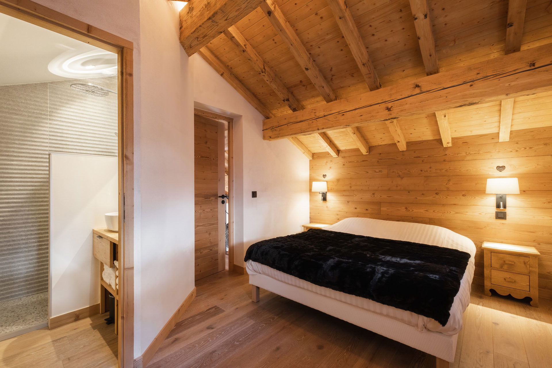 - BEDROOM (18.47 m² including 4.69 m² mansard roofed) : 1 DOUBLE BED (160), north facing windows, roof / vegetation / next door chalets view, adjoining SHOWER ROOM (2.61 m²) : washbasin, walk-in shower, WC, TOWELDRYER radiator.