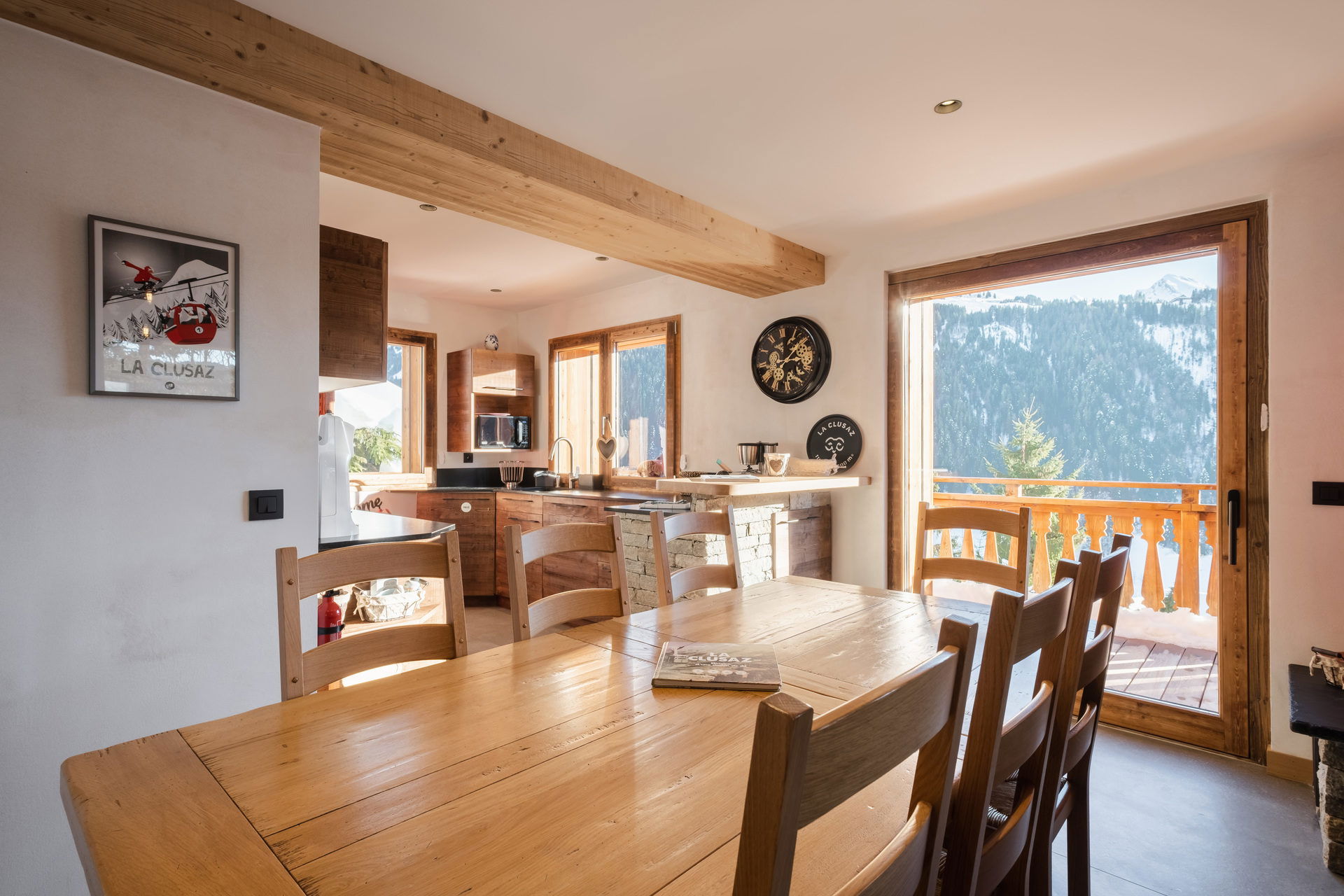 - Open KITCHEN : fridge + freezer, GLASS-CERAMIC STOVE, OVEN, MICROWAVE, DISHWASHER, NESPRESSO coffee machine, WINE CELLAR, west facing window, vegetation/ next door chalets view, south facing window, panoramic mountain view.