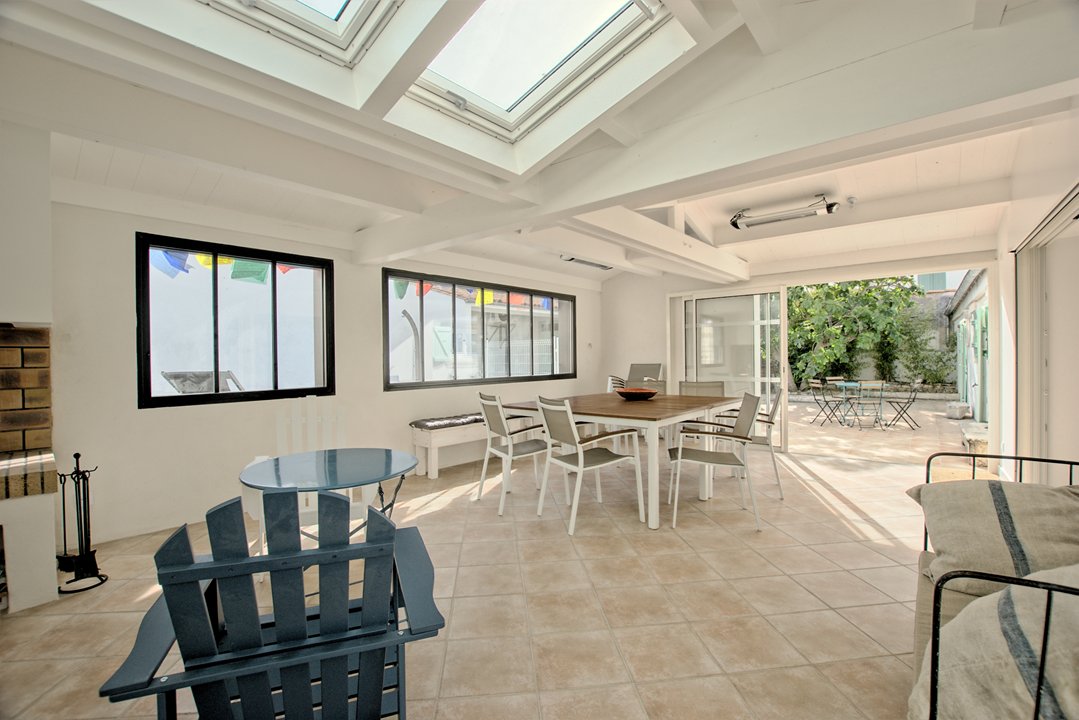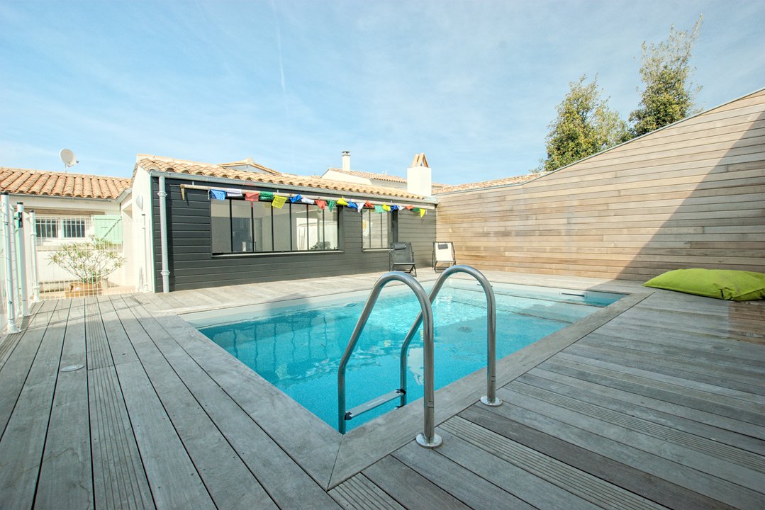 Outside, the garden includes a heated pool (3.50 x 5.50m), salt water with a wooden terrace, a courtyard with a terrace, a courtyard with a fireplace, a parking space for one or two vehicles.
