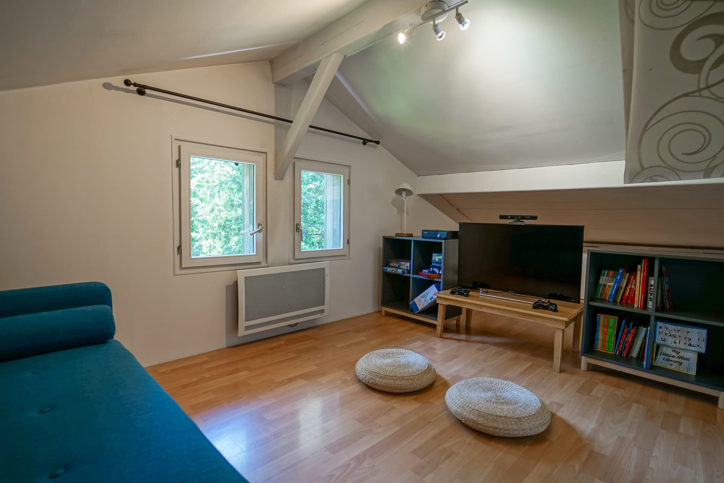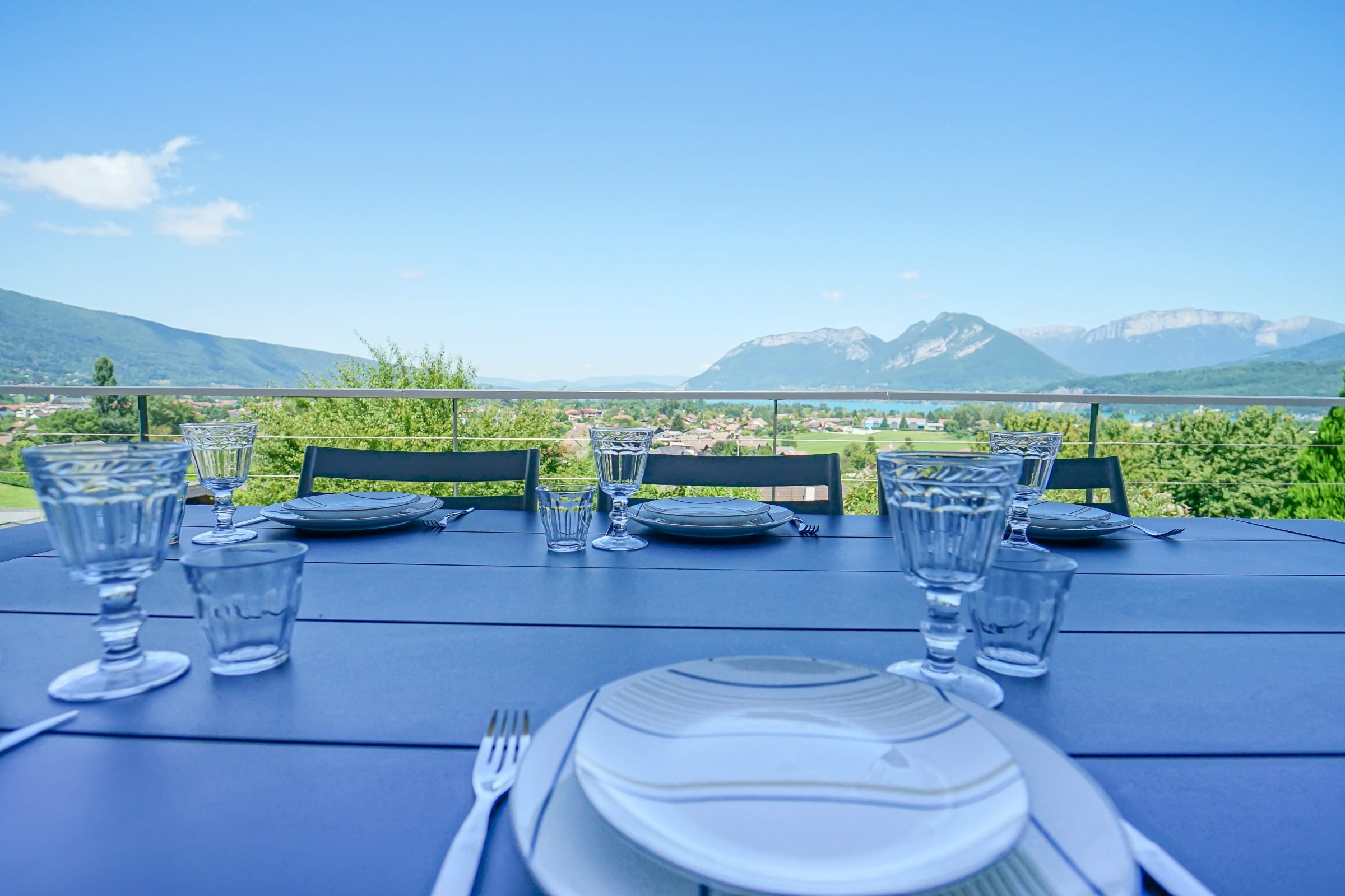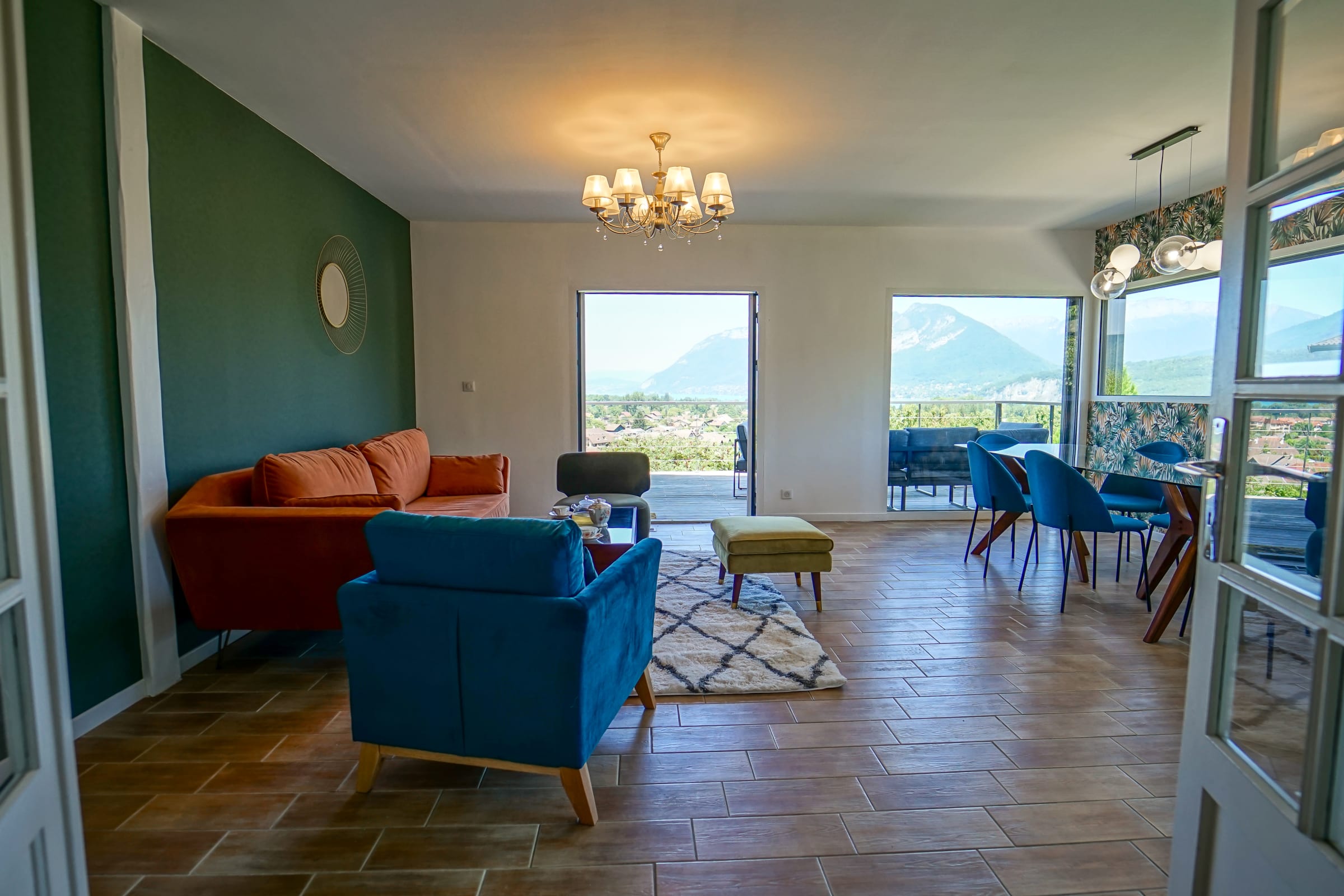 Quietly located on the heights of the village with a panoramic view of the lake and the mountains, discover a comfortable house for 8 people 5 minutes from the center and its shops.