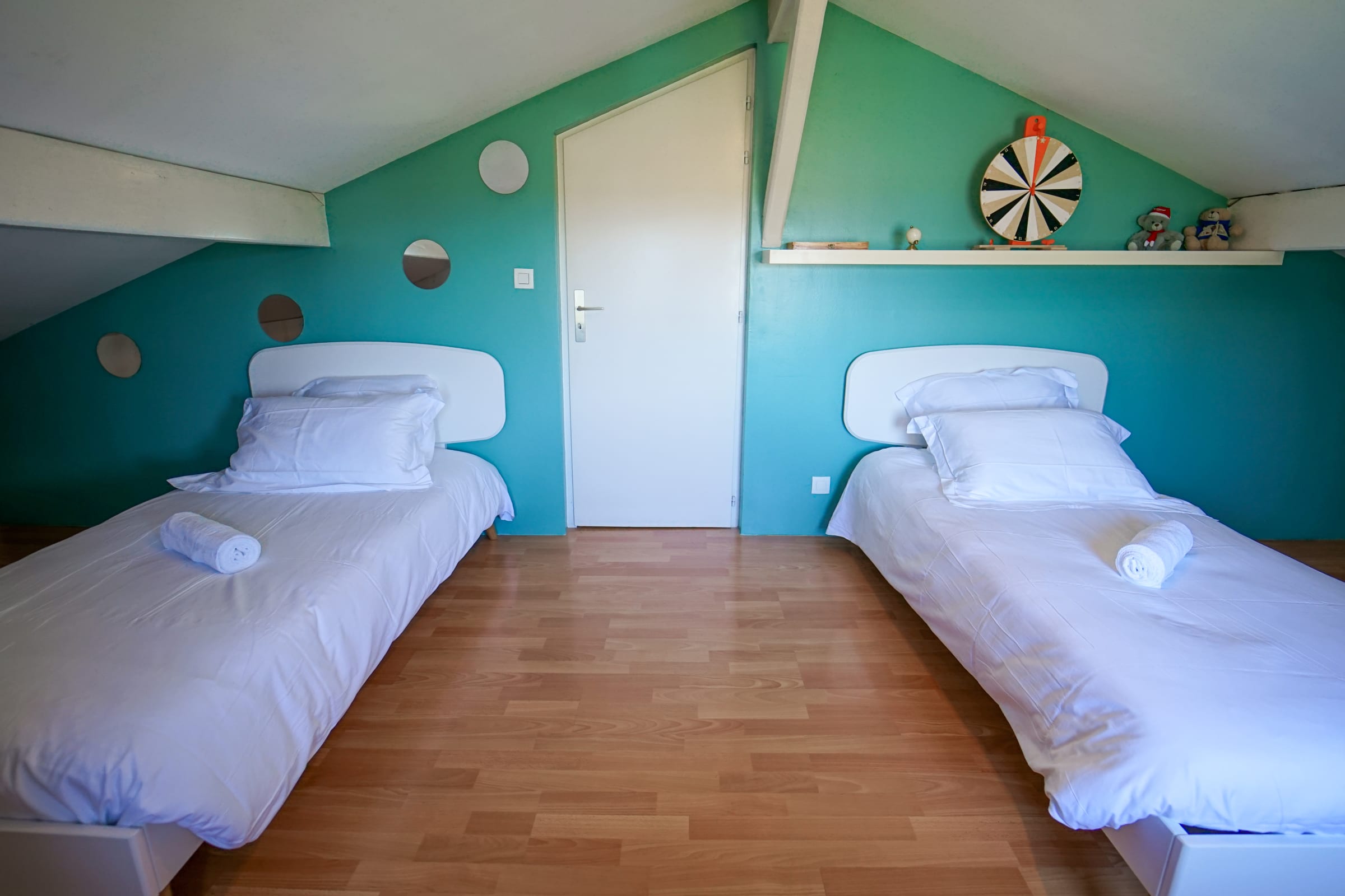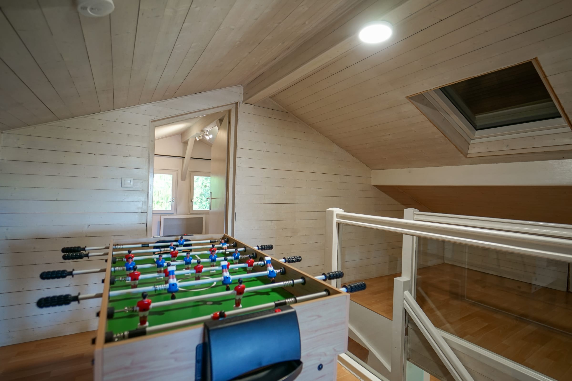 Finally, the second floor is for children!!! A room with two single beds, a games room with video games, and a table football!.