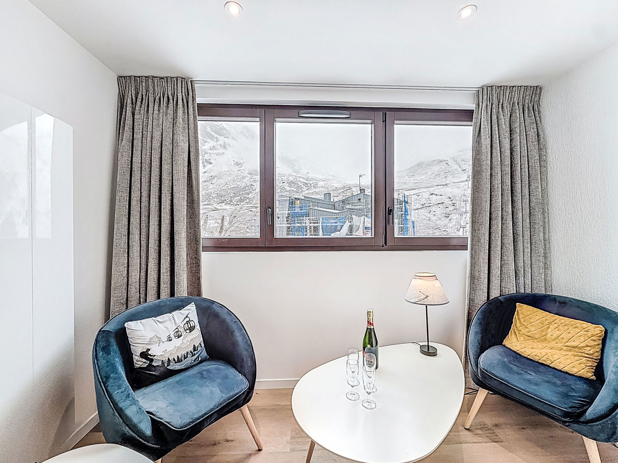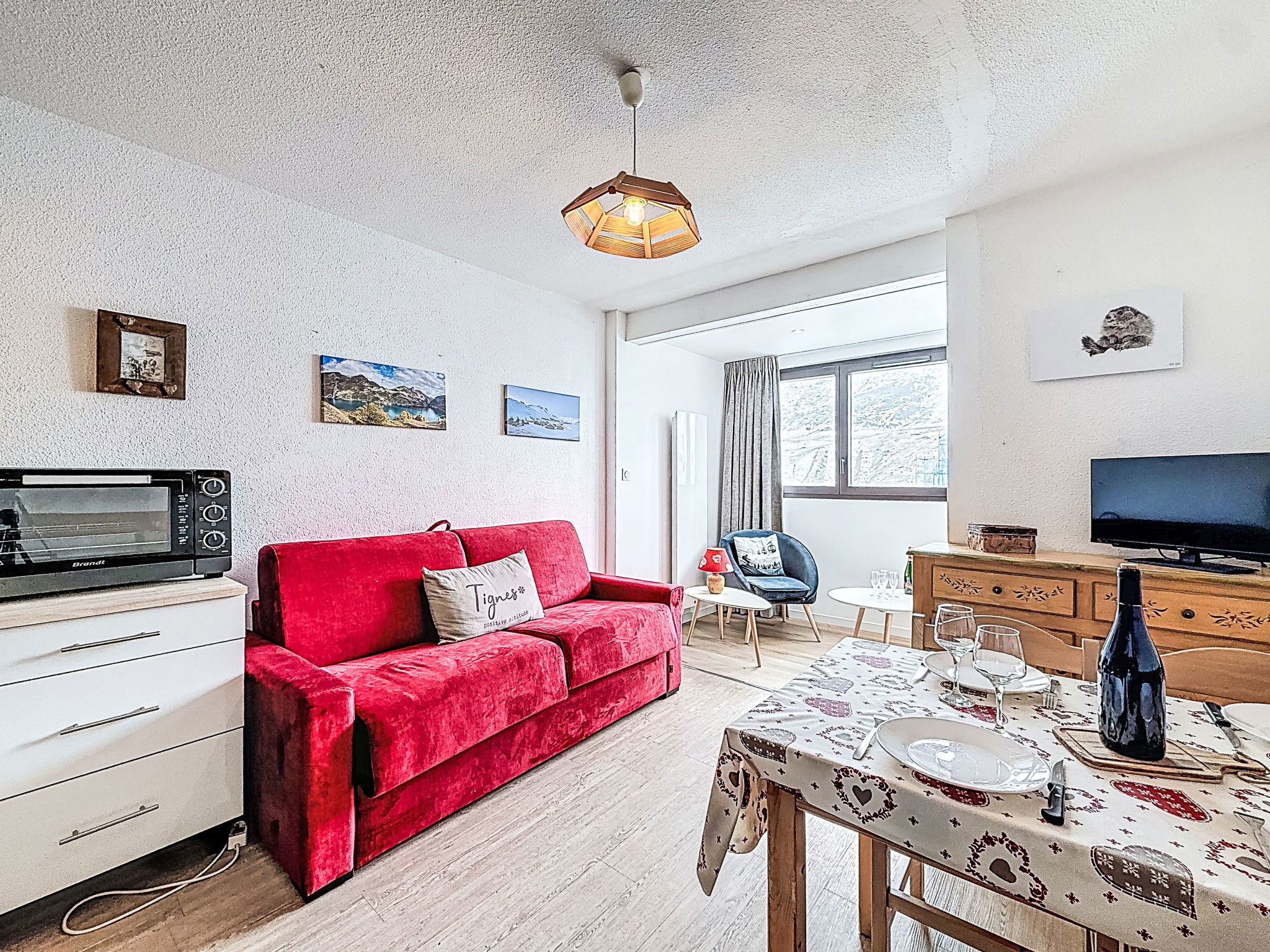 Tignes Val Claret: Apartment block "Plein Soleil (Val Claret)", 5 storeys. In the complex: lift, storage room for skis, central heating system. Supermarket, restaurant 50 m, bus stop 500 m, indoor swimming pool 2.2 km. Sports centre 2 km, skisport facilities 50 m, children's ski school 200 m. Well-known ski regions can easily be reached: TIGNES VAL D'ISERE 50 m. Please note: ski bus (free of charge).