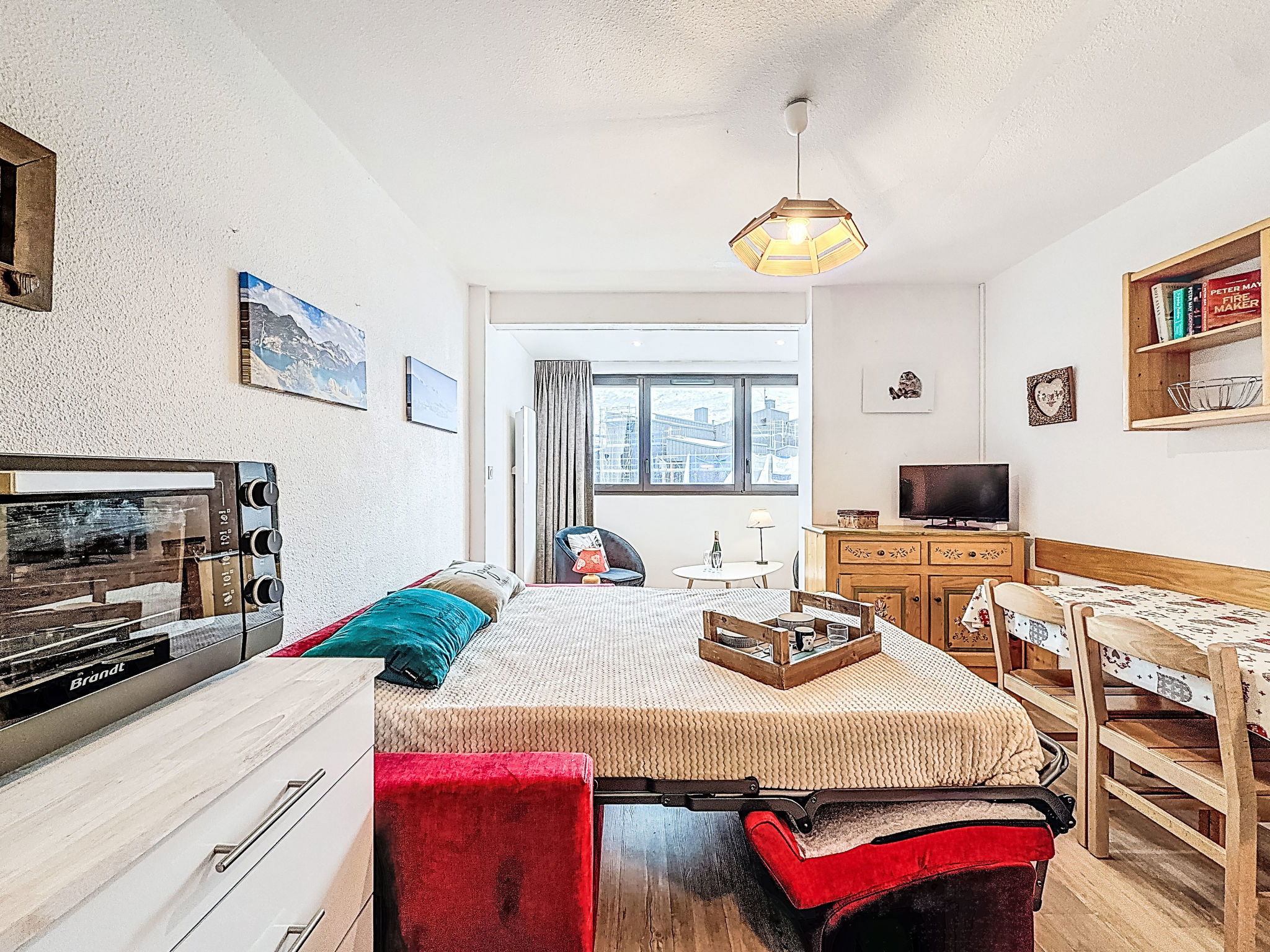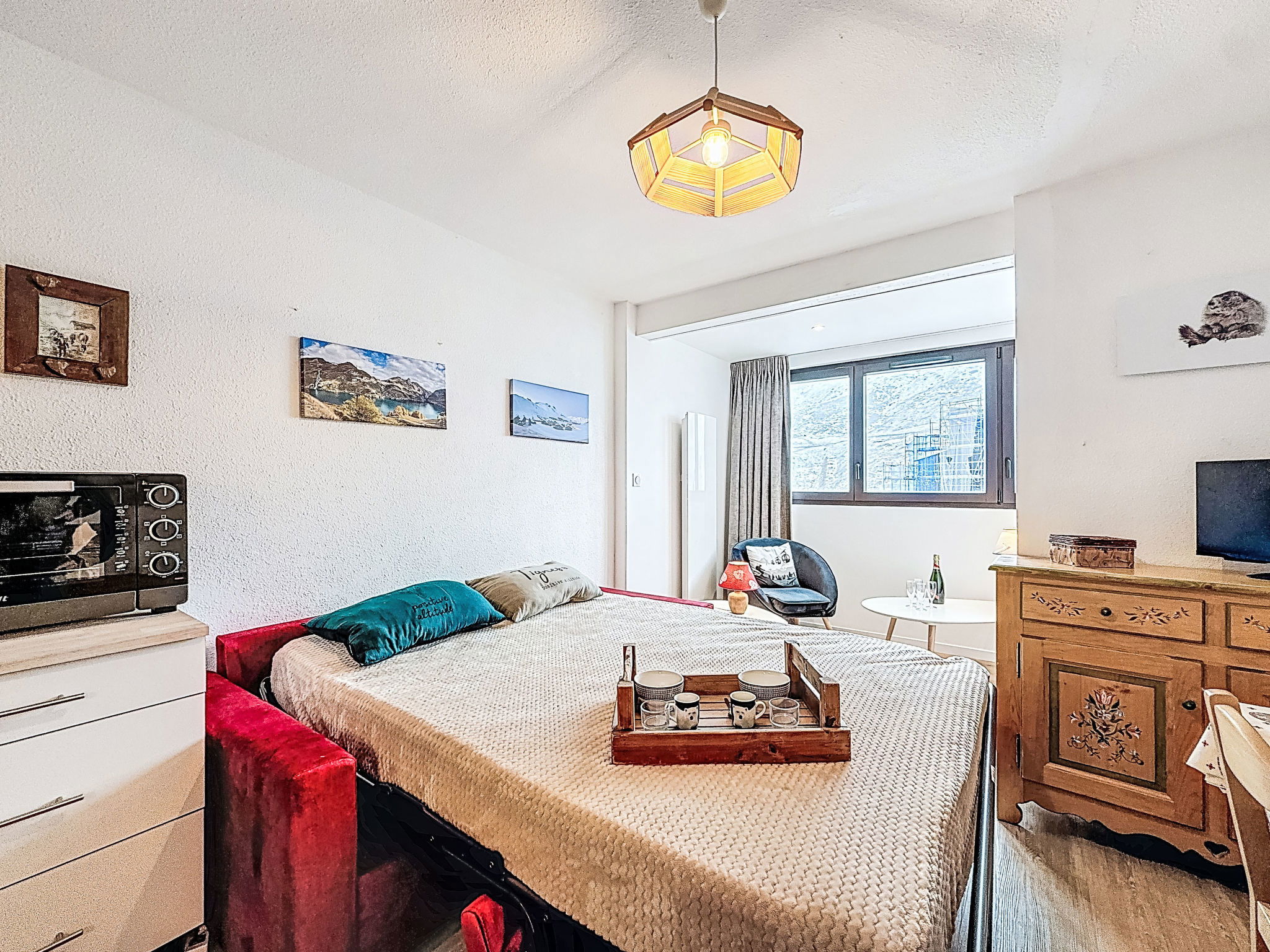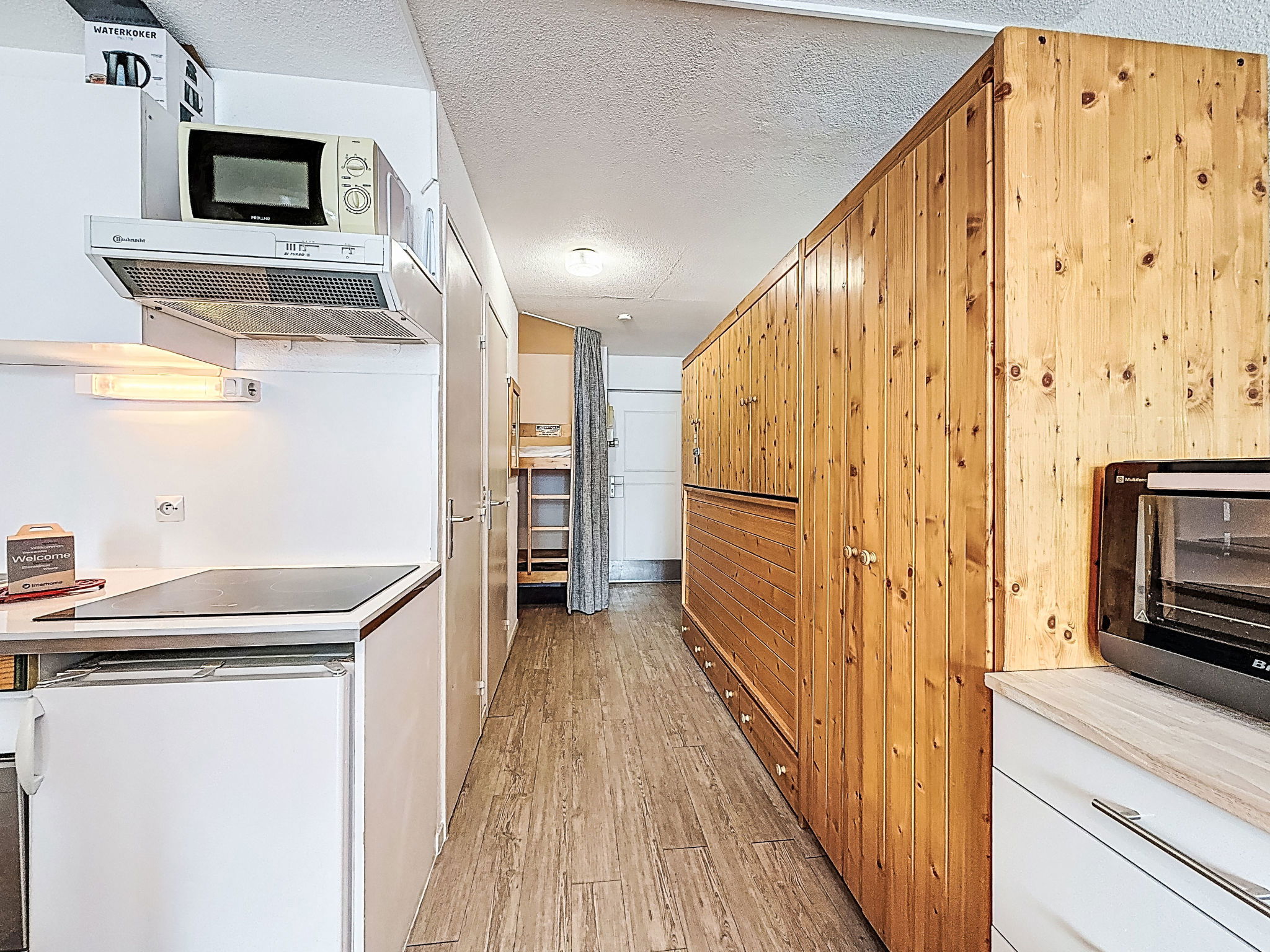 1-room apartment 28 m2 on 1st floor. Practical and beautiful furnishings: living/dining room with 1 pull-out bed (2 pers. 2 x 80 cm), satellite TV and flat screen. Sleeping alcove with curtain, without window with 1 x 2 bunk beds (80 cm). Entrance hall with 1 wall-trunk bed (80 cm). Kitchenette (oven, dishwasher, 3 induction hot plates, microwave, electric coffee machine). Bathroom, sep. WC. Beautiful view of the mountains and the ski run. Facilities: Internet (WiFi, extra). Please note: smoke alarm. Instead of an enclosed bedroom, some sleeping areas are located in an open-plan area (gallery, alcove, etc.).