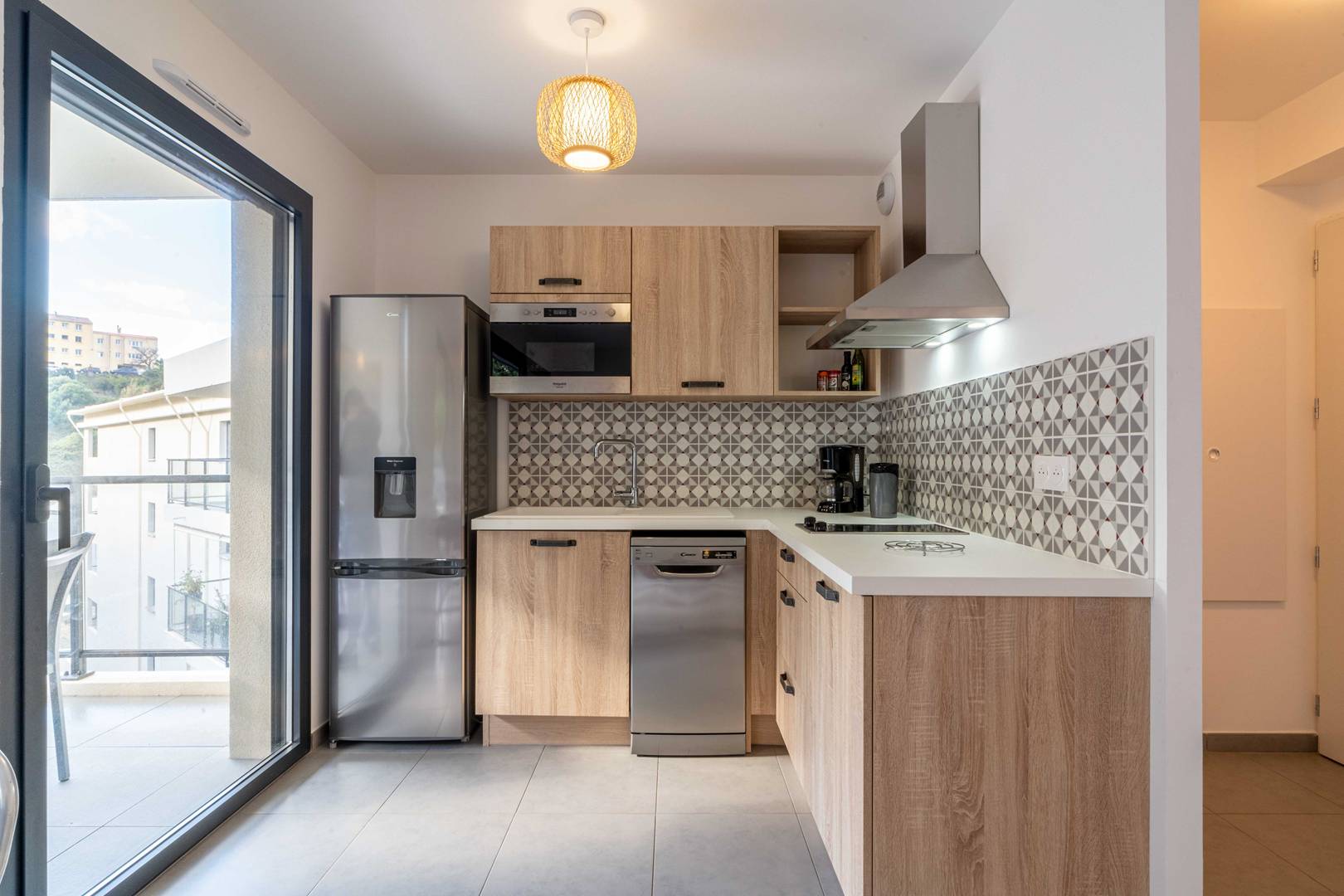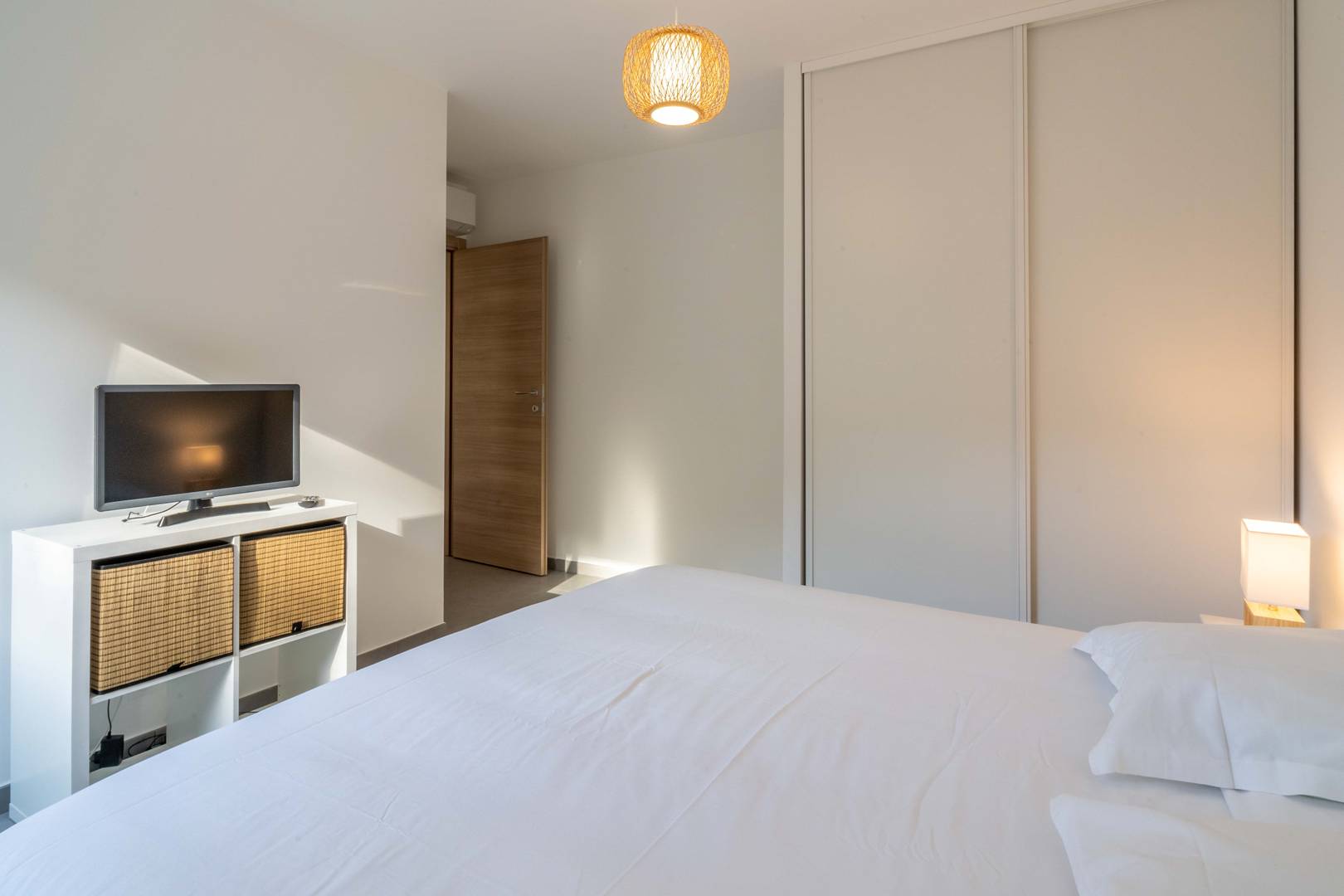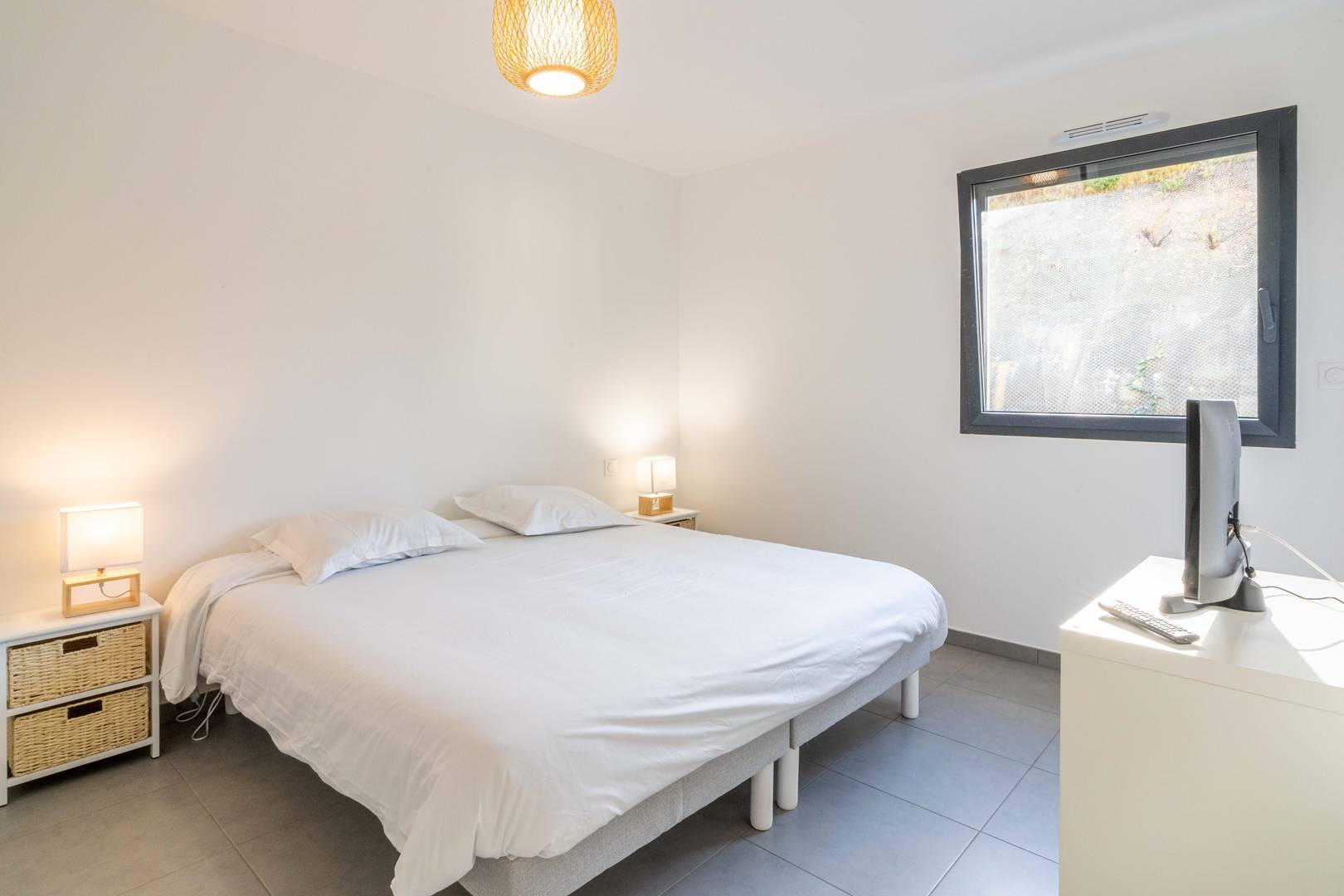 Two air-conditioned rooms by the sea Located in a recent building by the sea, this apartment is the ideal base for exploring southern Corsica or strolling and enjoying the magnificent beaches of the Gulf of Valinco. It consists of a living room with open kitchen, a bedroom with a 180cm double bed and wardrobe, a bathroom with shower and WC and a 17m2 furnished terrace. At the foot of the building you will find the beach of Mancinu, a nautical center, a restaurant and a bakery. The shops and entertainment of the port are 300m away. The apartment is air-conditioned and you have a private and secure parking space. It does not have internet access, we offer you the rental of mini wifi boxes from 7€/day. Household linen is provided (sheets and towels). For your comfort we carry out the cleaning after your departure, on the other hand we will ask you to arrange the furniture possibly moved, to empty the dustbins, to wash and arrange the crockery. Failing this, €100 could be deducted from your deposit. Pets and parties are not allowed in this accommodation. Upon your arrival you will have to deposit a deposit of €500 and pay, depending on the booking platform, the tourist tax. Arrivals and departures outside the contractual hours are possible independently, contact us for more details.