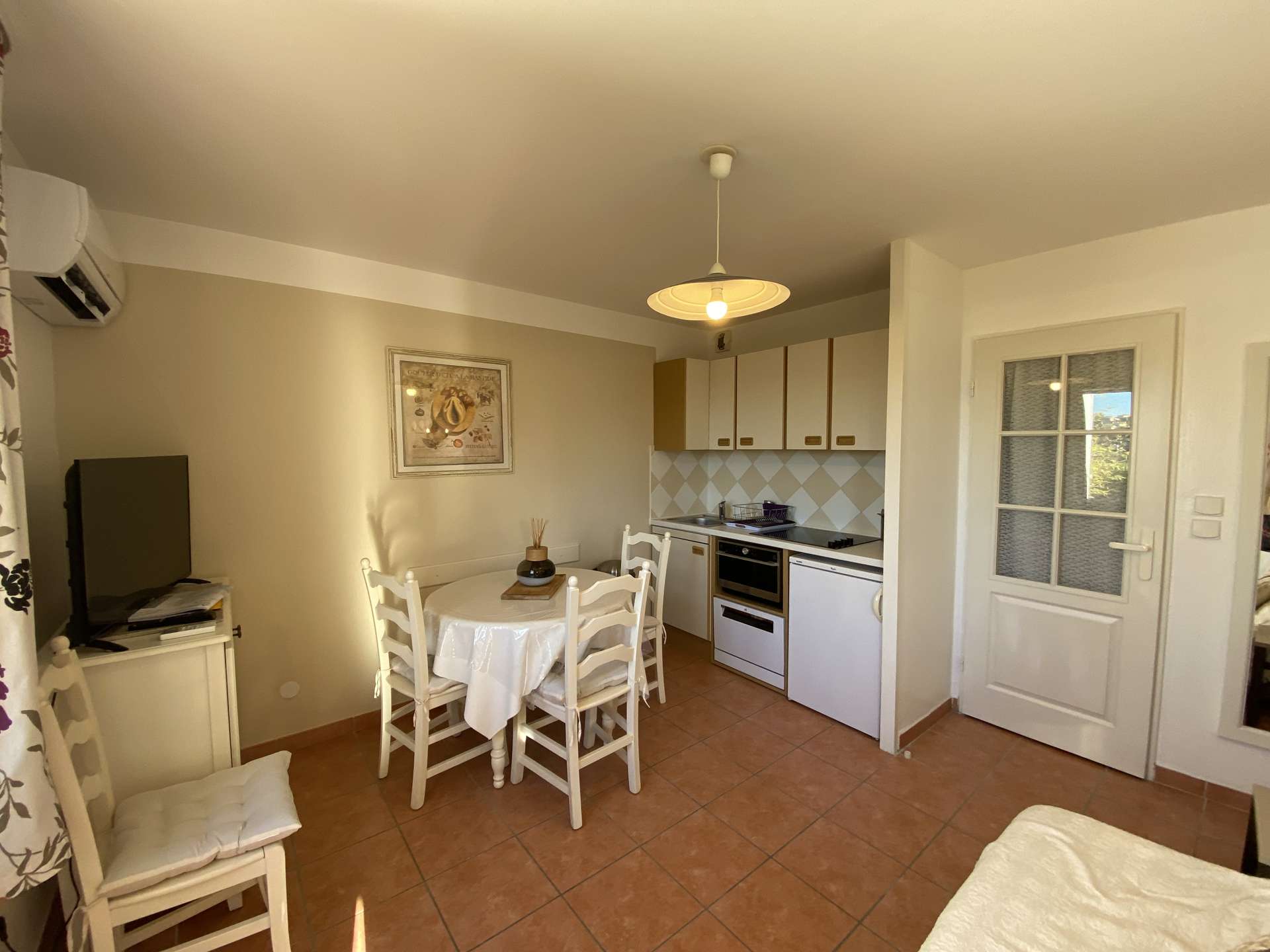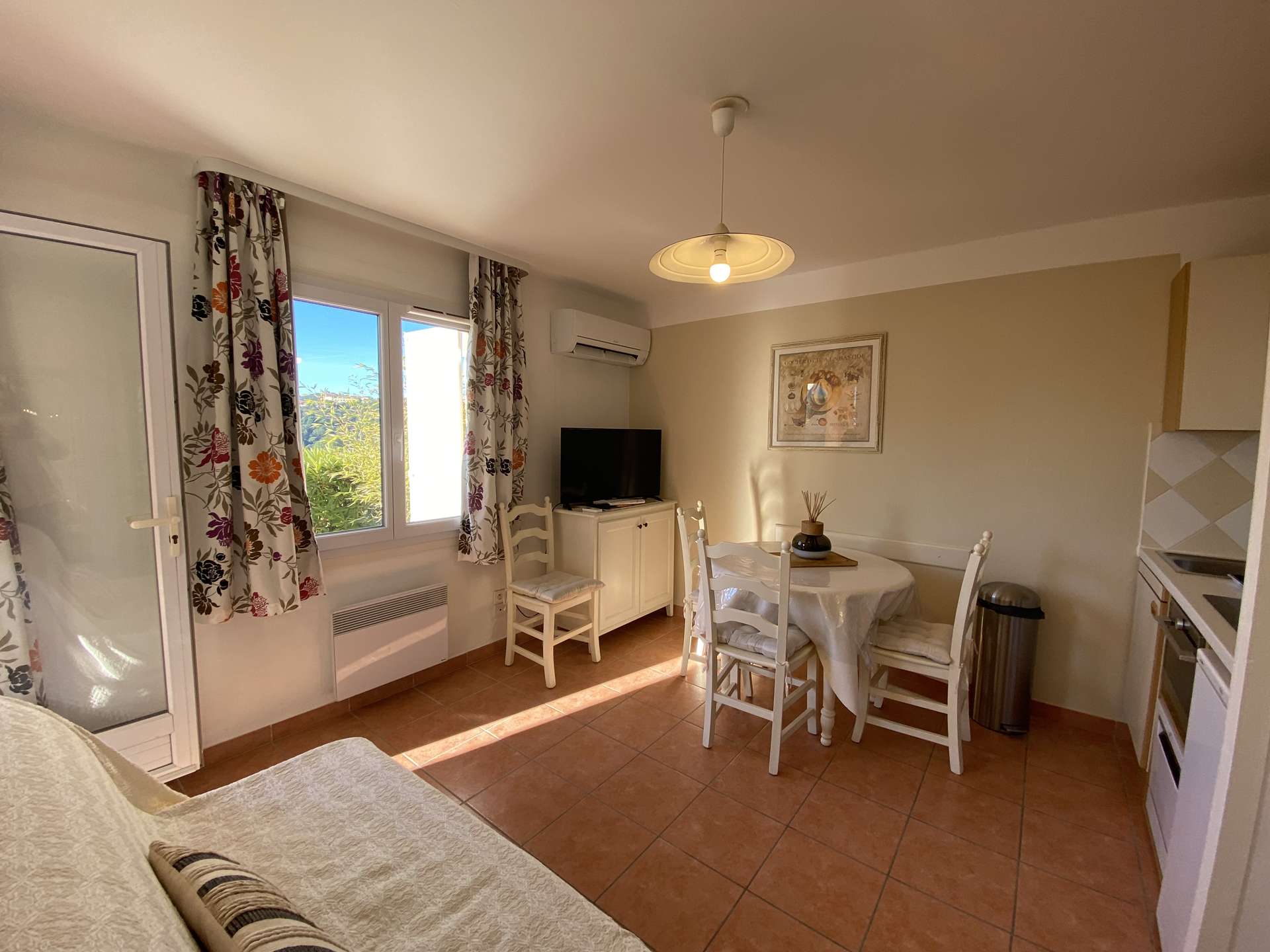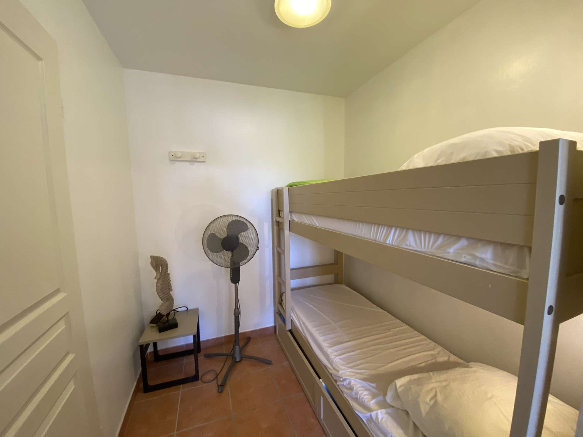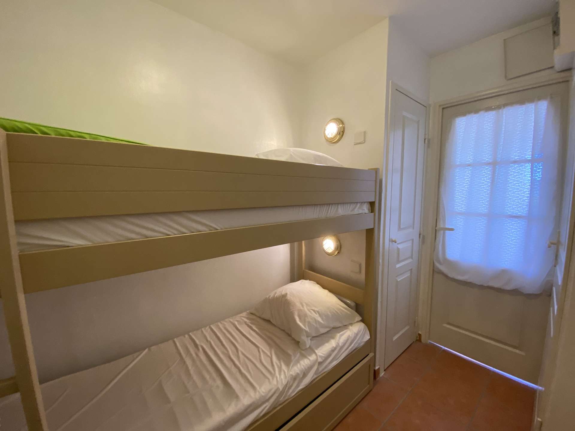 Les Issambres (83) - Col du Bougnon 2 room cabin - approx. 32 m² - up to 5 people This is an ideal vacation rental for a family trip! This accommodation is located in a holiday residence and offers calm and leisure. It consists of a living room with a double sofa bed, a fitted kitchen area, a sleeping area with two single bunk beds, a bedroom with a double bed, a bathroom, a separate toilet. The advantages of this rental on the Côte d'Azur: Ground floor, parking, huge communal swimming pool with paddling pool for children, tennis courts, lovely sea view. Cleaning and disinfection included.