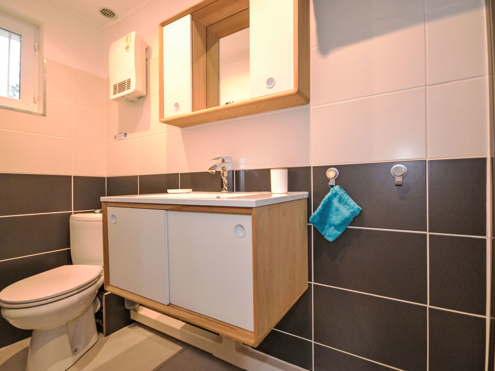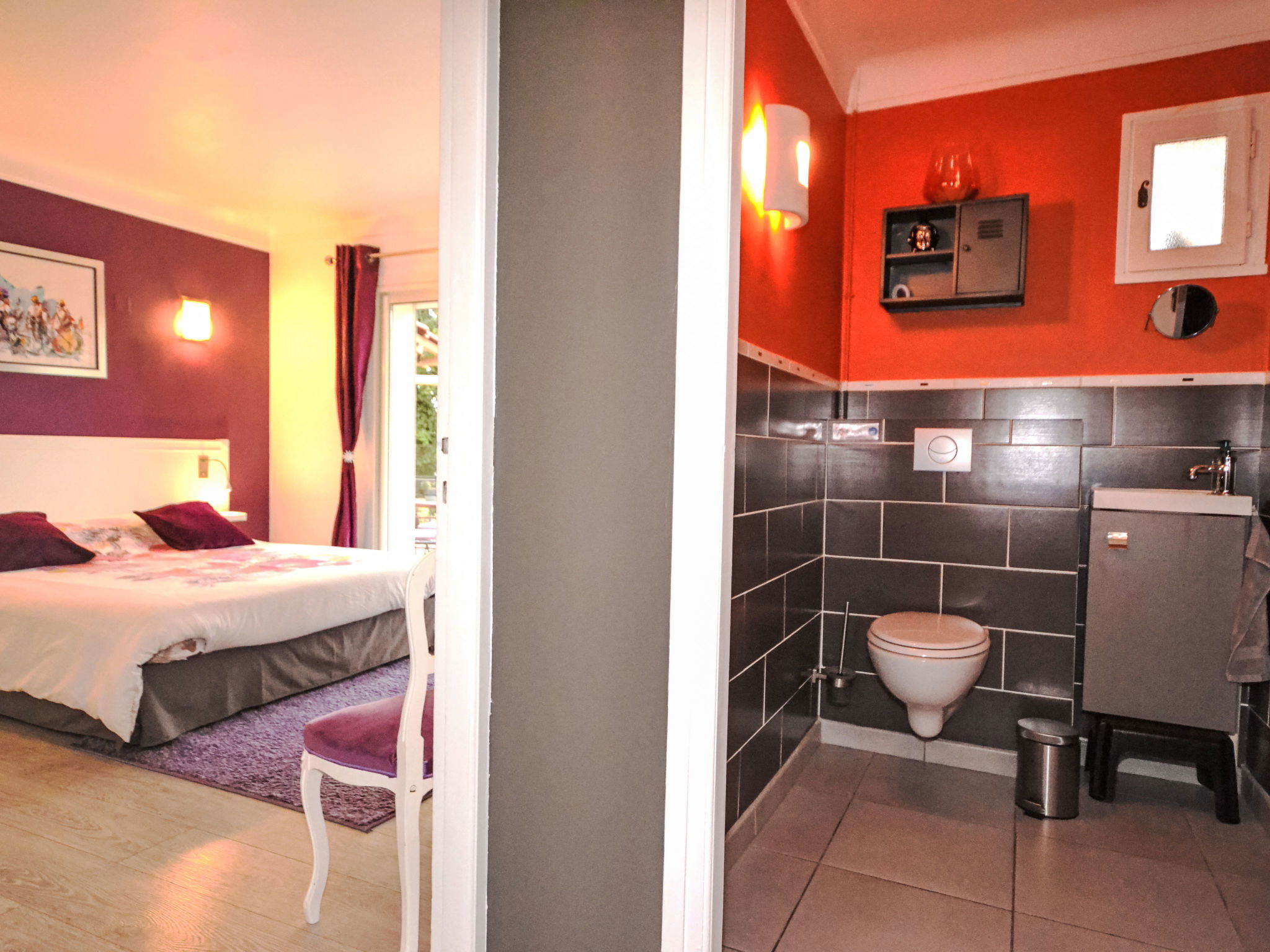 1 room with 1 french bed (160 cm), shower/WC and TV.