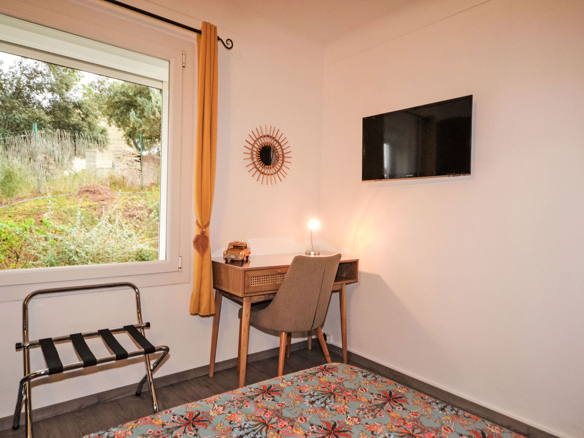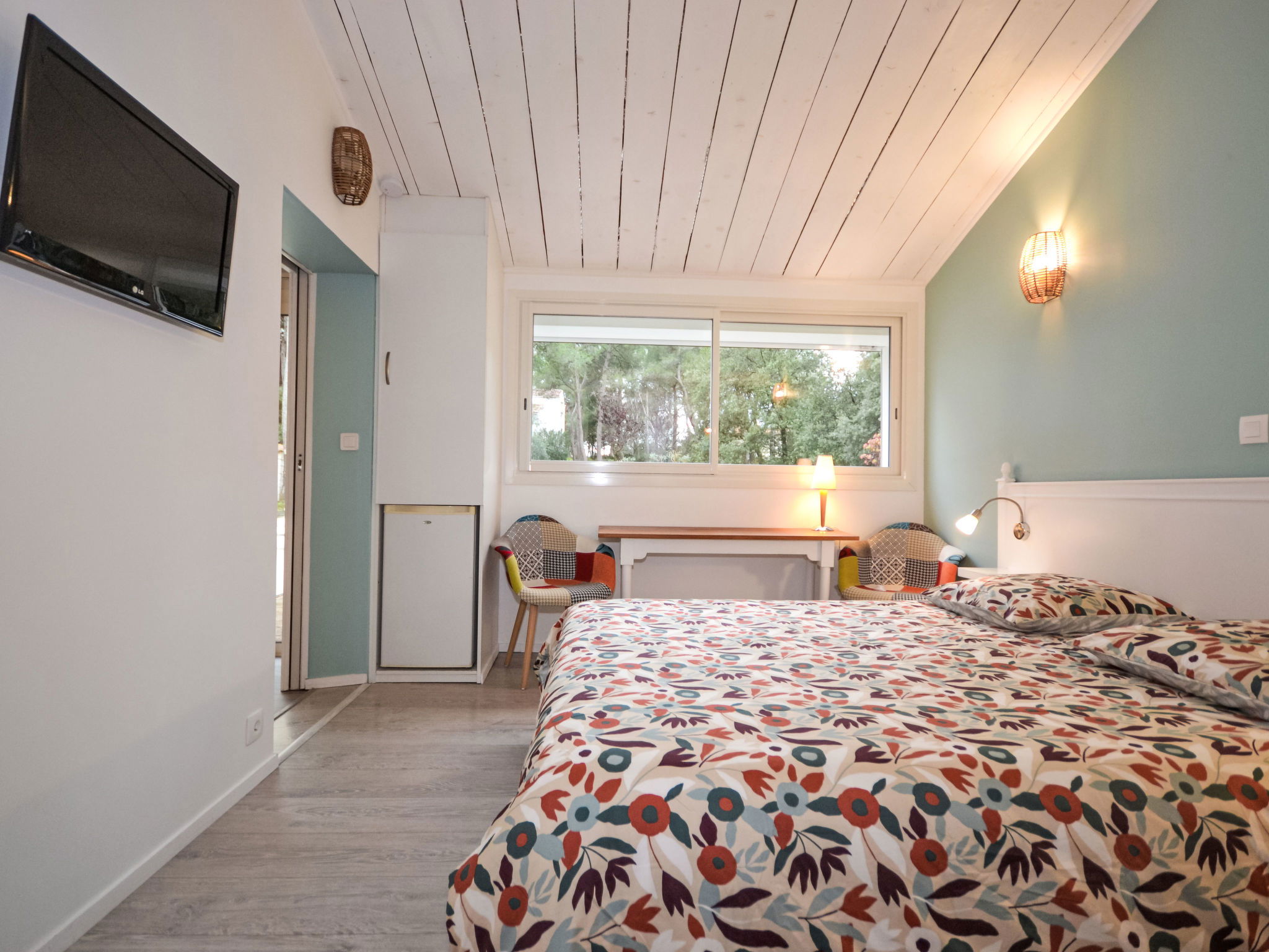 1 room with 1 french bed (160 cm), TV. Exit to the terrace.