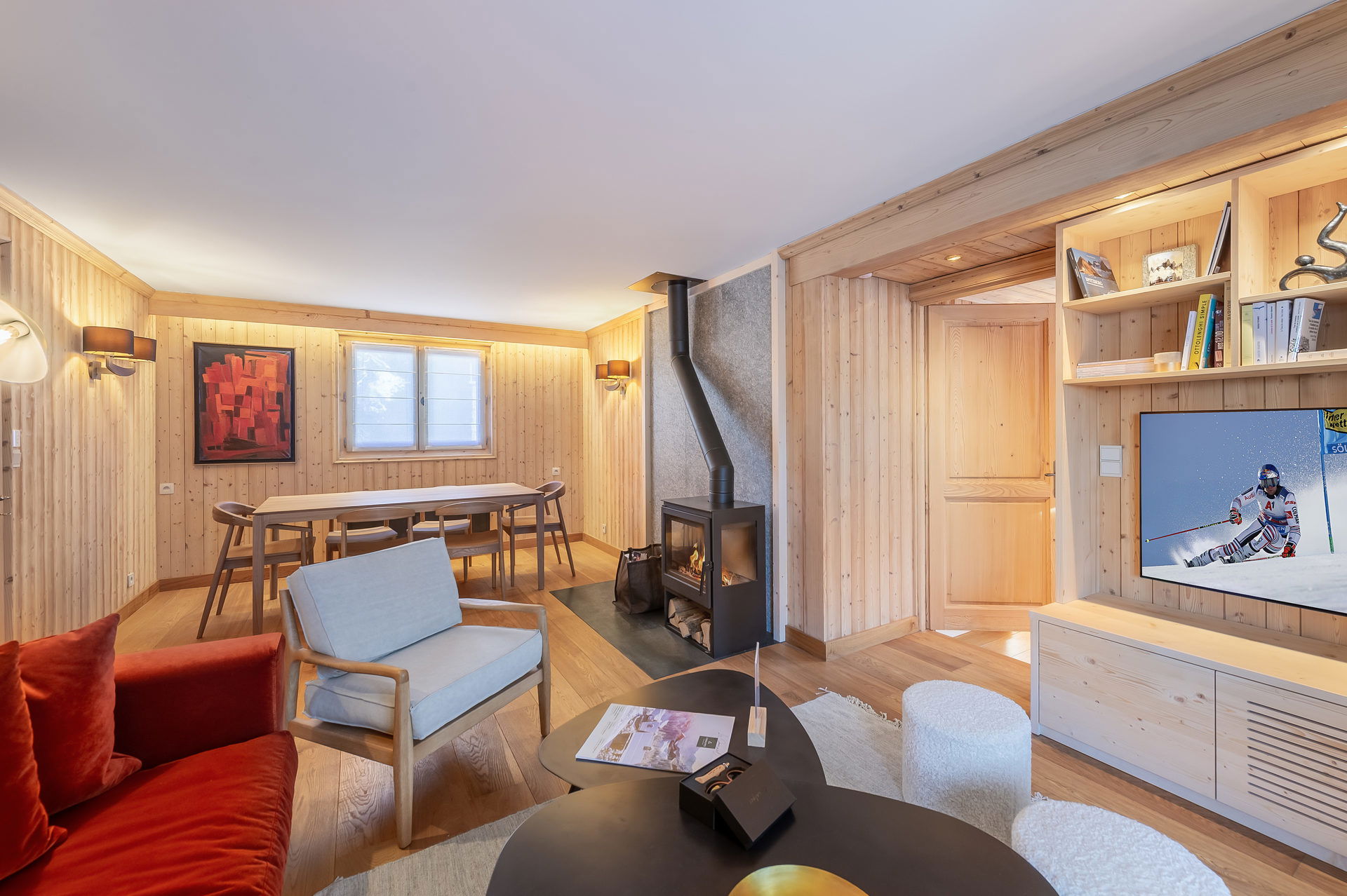 Renovated 65 m² flat that can accommodate 4 people in its 2 en suite bedrooms. The apartment is less than 5 minutes walk from the village centre and the Chamois lift. The living area offers a TV lounge, a dining area and access to the balcony. You can also enjoy the warmth offered by the wood-burning stove. The flat also has a private uncovered parking space.