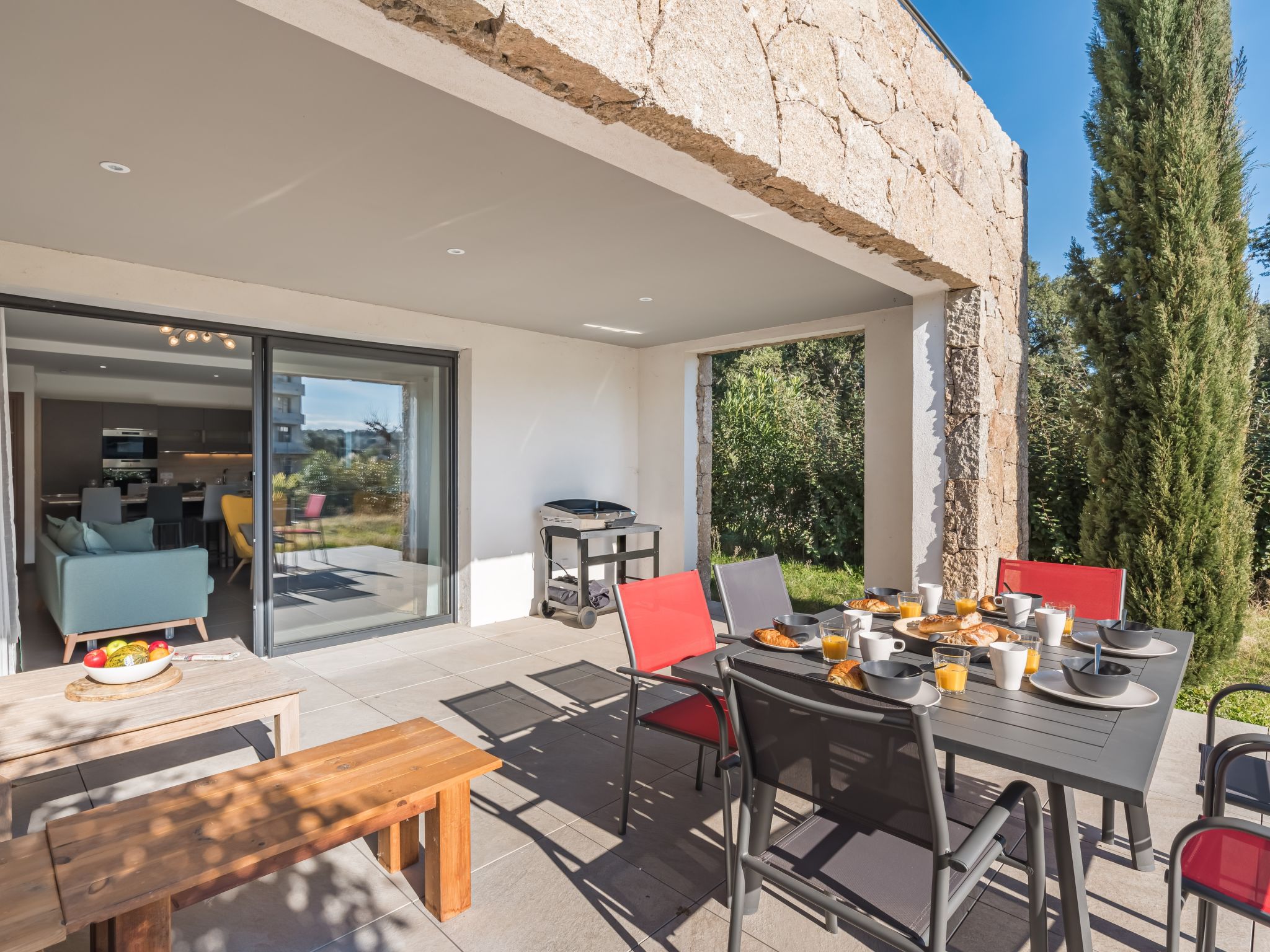Beautiful residence "Domaine d'Arca". On the outskirts, 2 km from the centre of Porto Vecchio, 4 km from the sea, 8 km from the beach. For shared use: park 4 ha (fenced), swimming pool (seasonal availability: 01.Jun. - 01.Nov. pool opening hours: 10:00-20:00) with internal staircase. Unconventional pool shape. Outdoor shower, poolhouse with WC, tennis (2 x hard court), boccia, pool maintenance by the owner/gardener. Shop 2 km, grocery 1 km, supermarket 2 km, restaurant, bakery 500 m, sandy beach "Santa Giulia" 8 km. Sports harbour 3 km, golf course 7 km, riding stable 3 km. Nearby attractions: Figari 18 km, Bonifacio 28 km, Solenzara 40 km, Iles Lavezzi. Hiking paths: Aiguilles de Bavella, Réserve naturelle de Bonifacio. Please note: car recommended. Suitable for families. Airfield close by 25 km from the property.