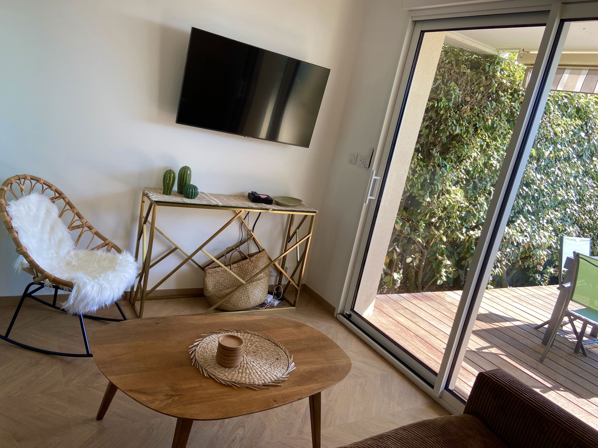 Come and enjoy the seaside in this superb apartment completely redone with quality materials and equipment - Entrance with cupboard - Living room with fitted and equipped kitchen (fridge / freezer - Microwave - Oven - Induction hob - Hood - Toaster - Kettle - Dishwasher - Washer-dryer) lounge area with TV and sea view - Terrace with furniture facing South/West - Bedroom with 140x190 bed + chest of drawers - Bathroom with walk-in shower - WC - Outdoor parking - Bike room - WIFI