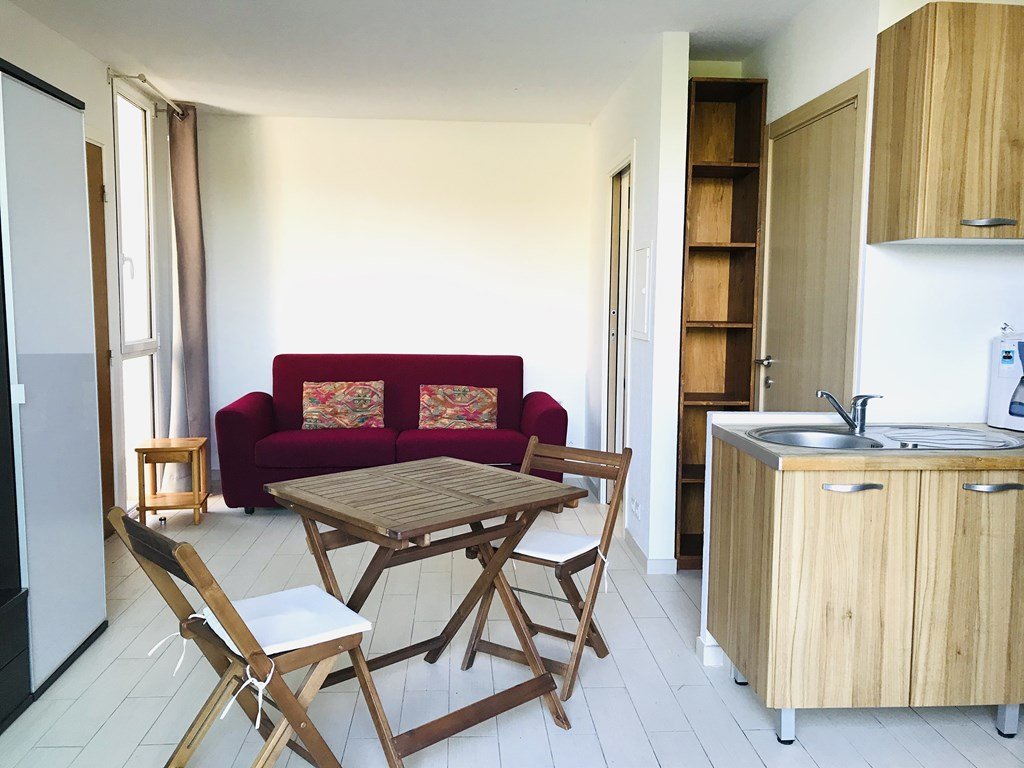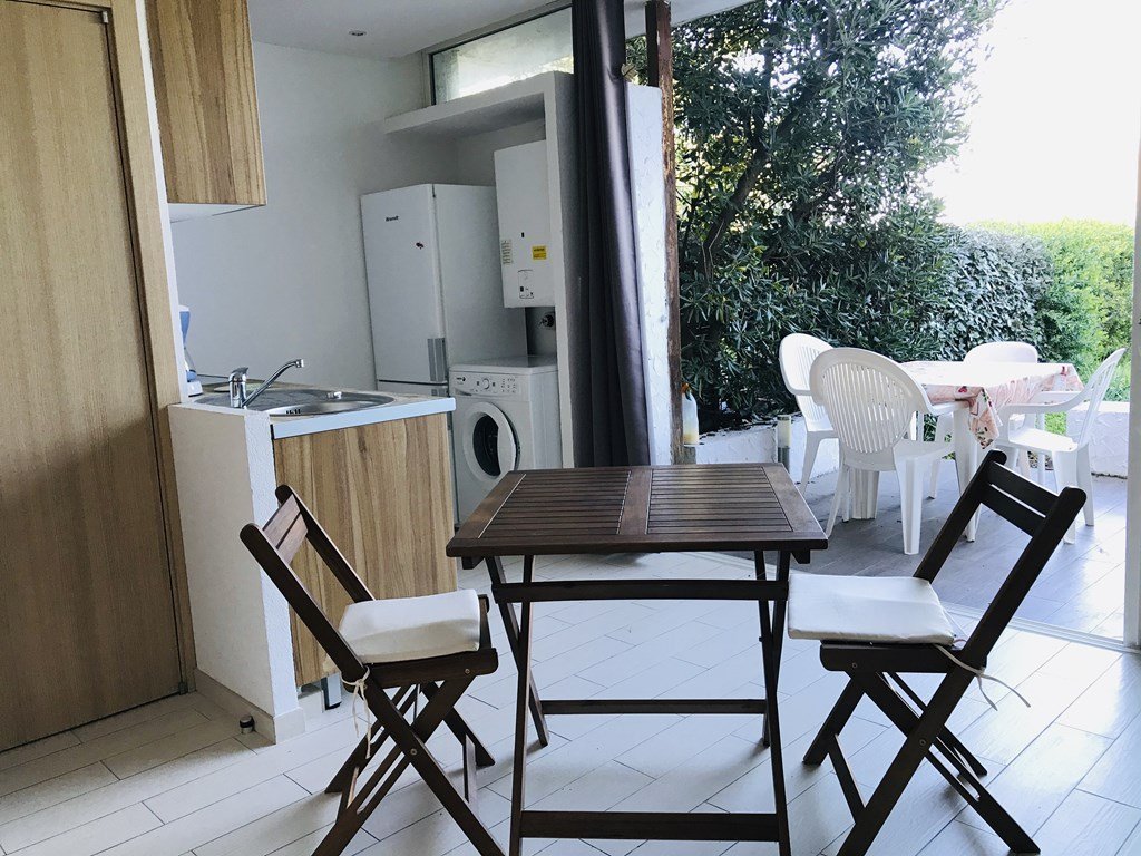 Studio - 25 m² - up to 2 people Located in the "Vaccaja" area in the Navy of Sant'Ambroggio about 500 meters from the beach. The studio, on the ground floor, is composed of an equipped kitchen, a living room with a sofa bed, a shower room, a separate WC. The advantage of this accommodation: It has a pretty terrace and public parking. From the studio, it is possible to walk to the beach and the Marina de la Marine Cleaning, bed linen and towels are included in the price