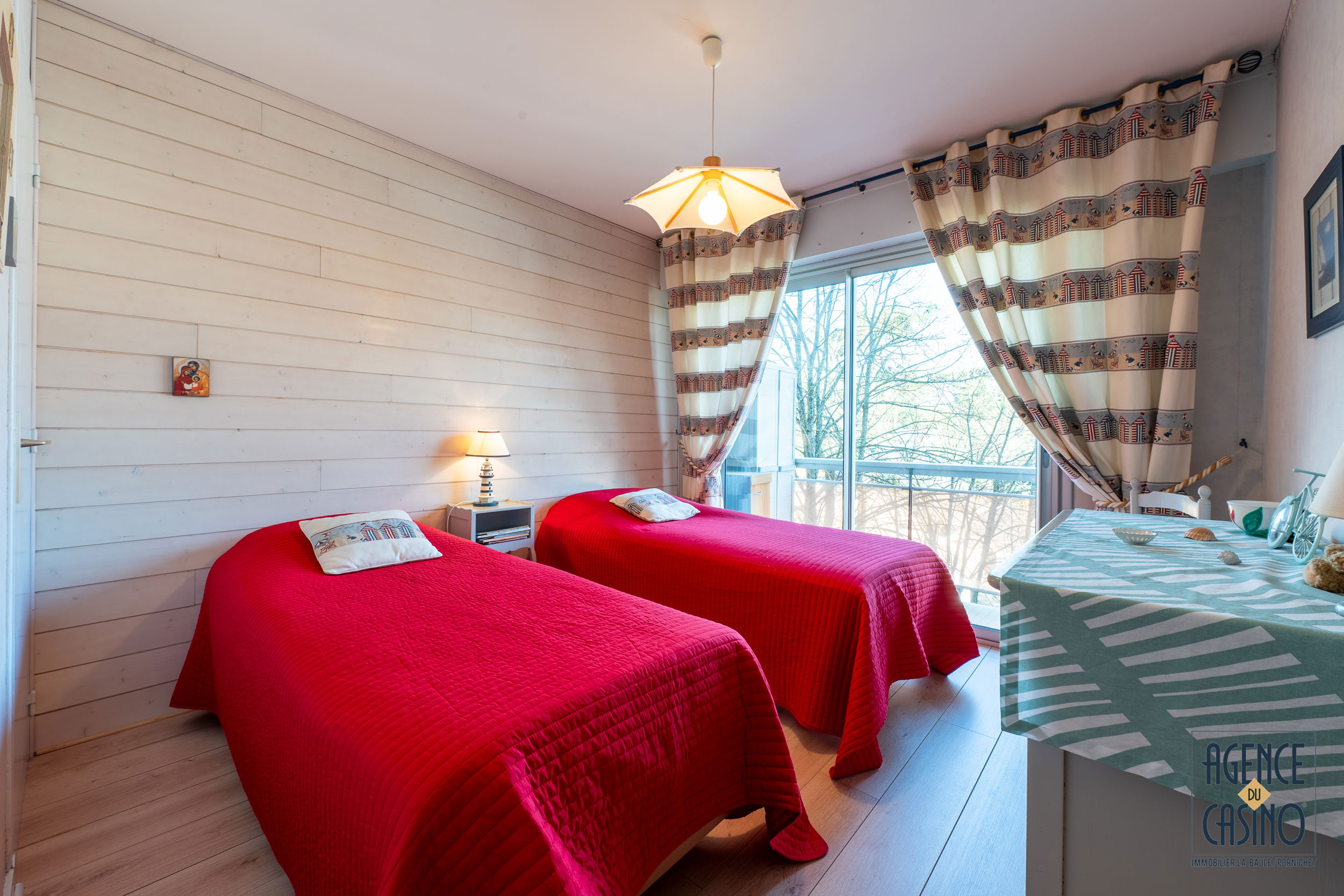 Less than 100 m from the main shopping avenue of La Baule - Ideal location for this pleasant apartment located on the 2nd floor comprising: Entrance with cupboard - Living room with sofa bed 160/190 (TV + HIFI channel) opening onto the South Facing terrace Sea - Fitted and equipped independent kitchen (Induction hob - Oven - Refrigerator - Dishwasher - Washing machine - Microwave) - Bedroom n°1 with 1 bed 140/190 opening onto balcony - Bedroom n°2 with 2 beds 80 /190 - bathroom - WC ind. - Private parking - WIFI ACCESS