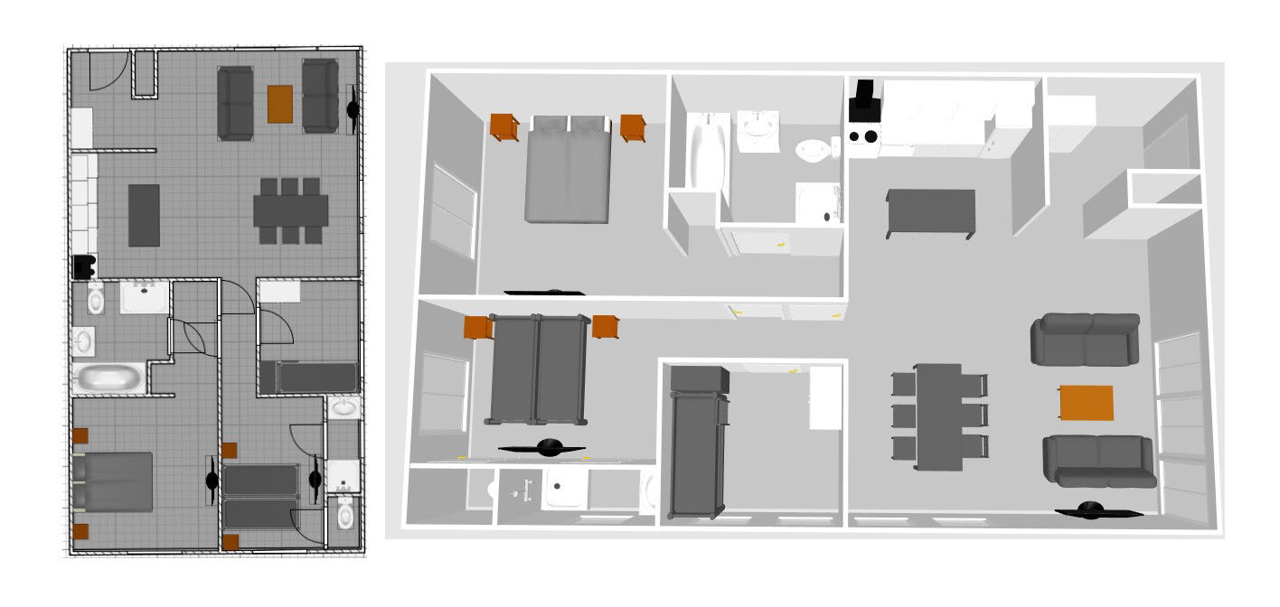 Elegant 4 room apartment of 80 m2 for 6 people.