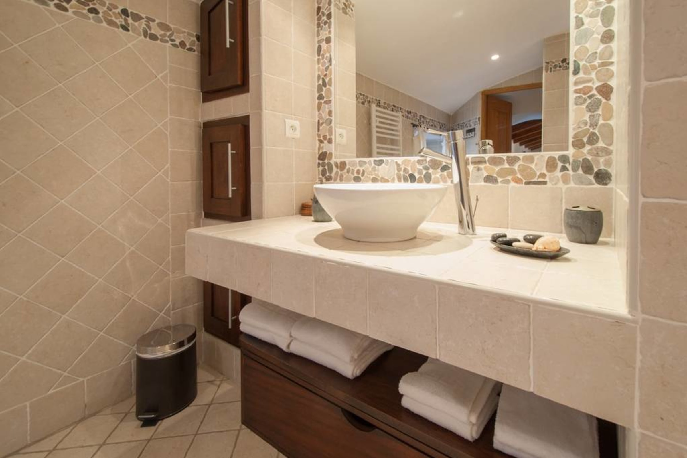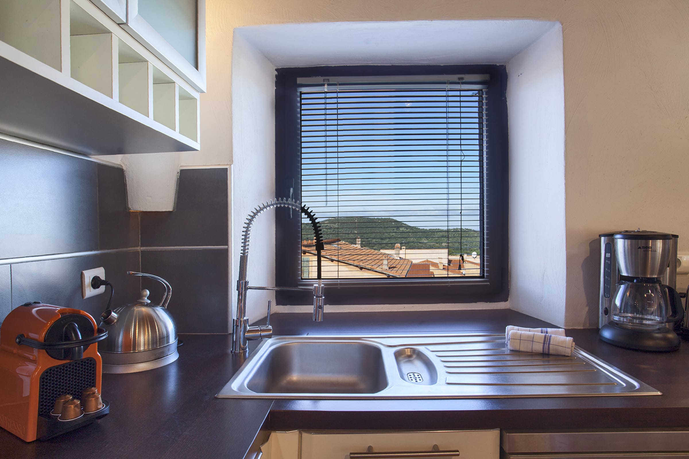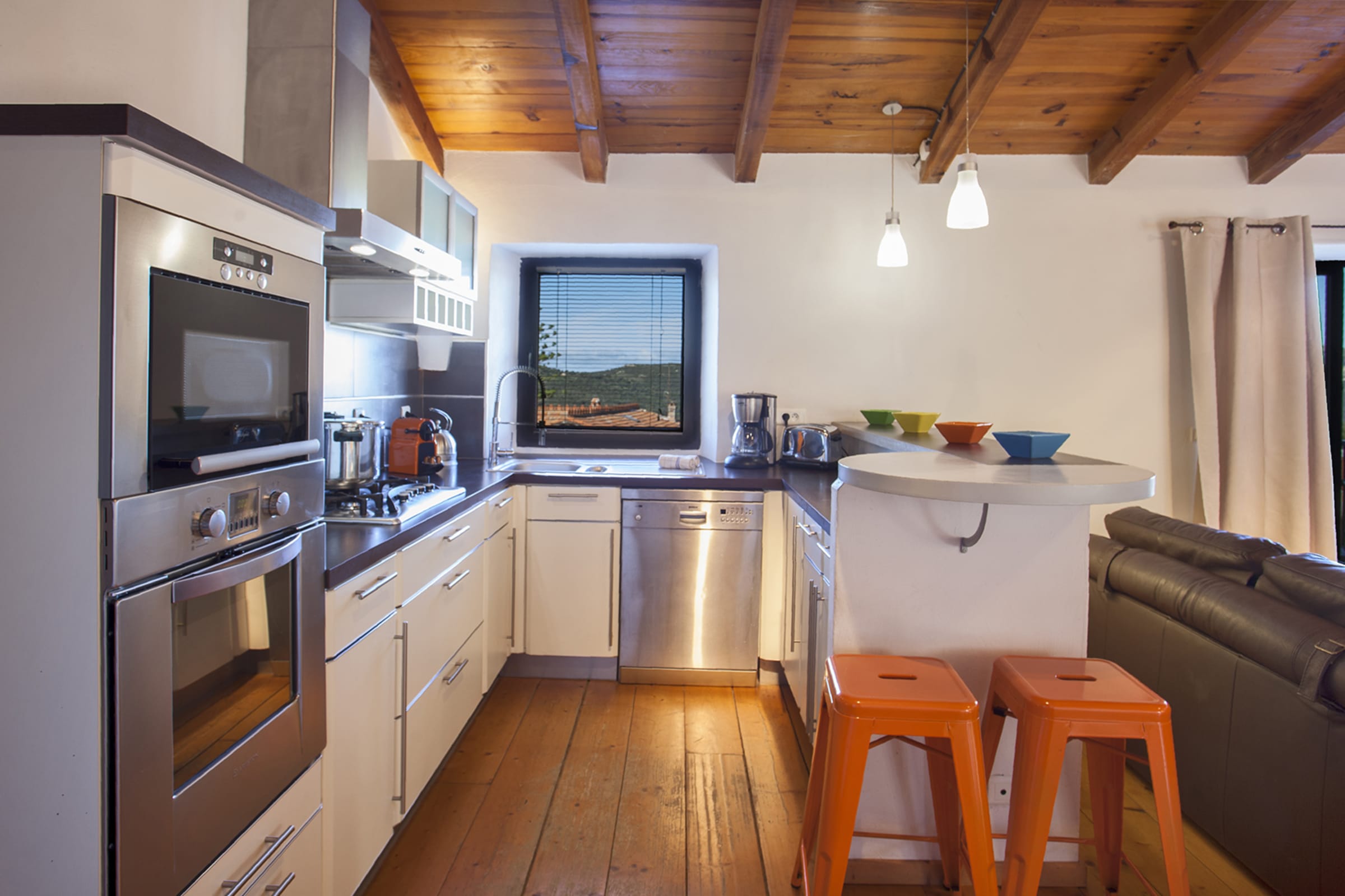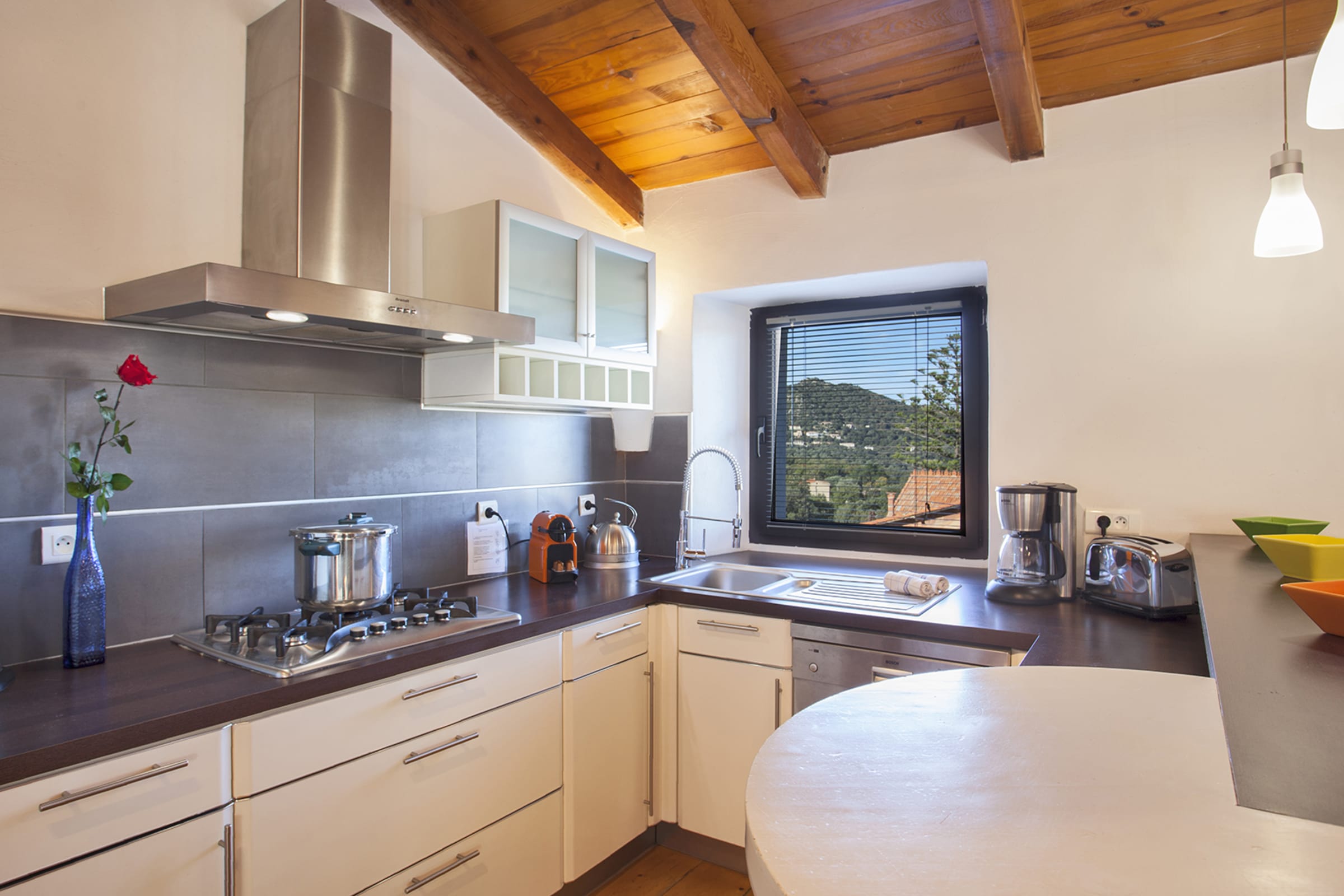 The kitchen equipment is very complete: washing vaisseille, fires plate gas, large freezer, large fridge, oven, microwave, kettle, toaster, coffee maker, plenty of cookware, grocery bottom (salt, pepper, oil, 2 tea towels, dishwashing liquid, dishwasher pods).
